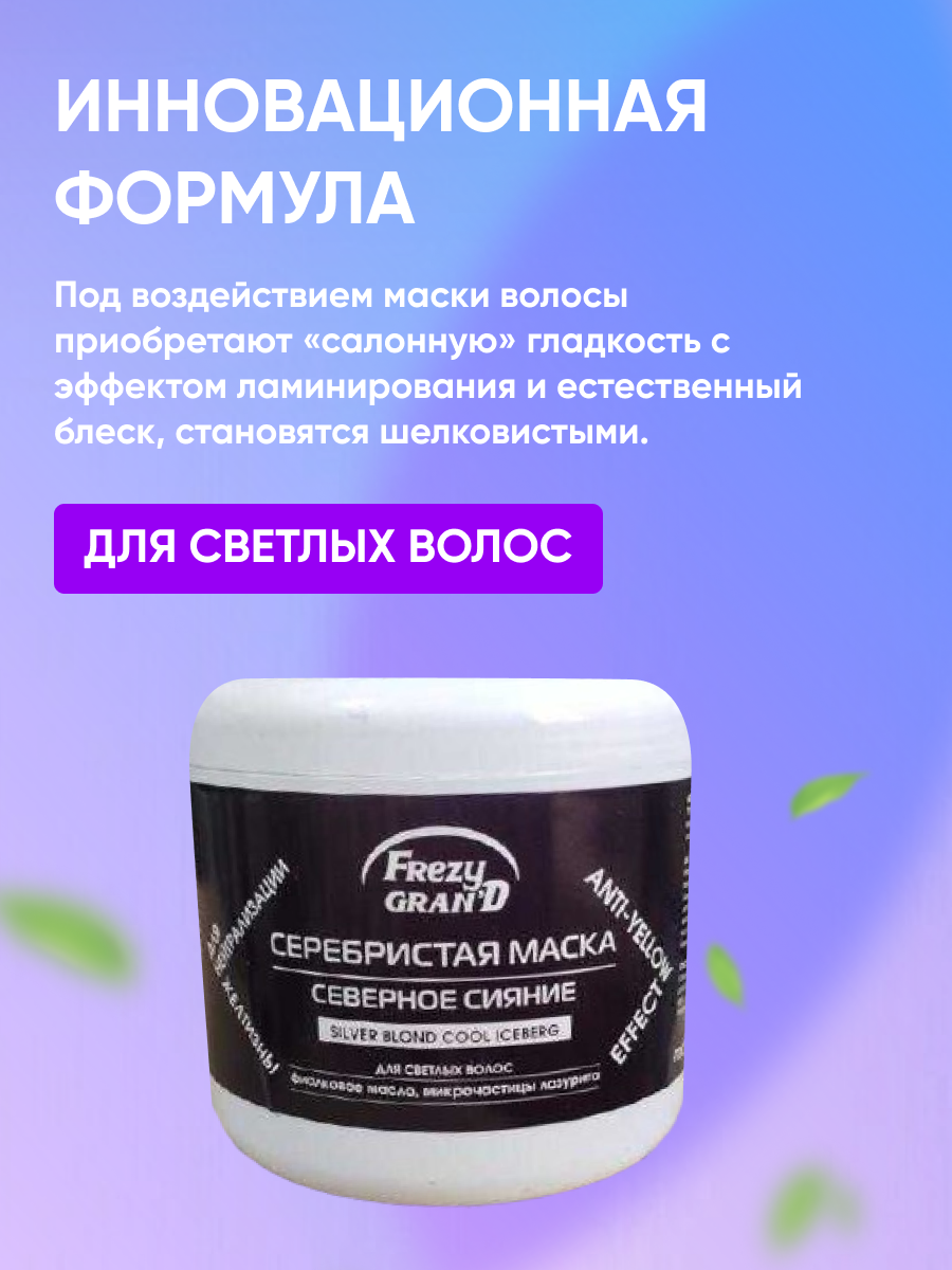 Маска GALACTICOS серебристая для нейтрализации желтизны светлых волос Северное сияние 500 мл информация: