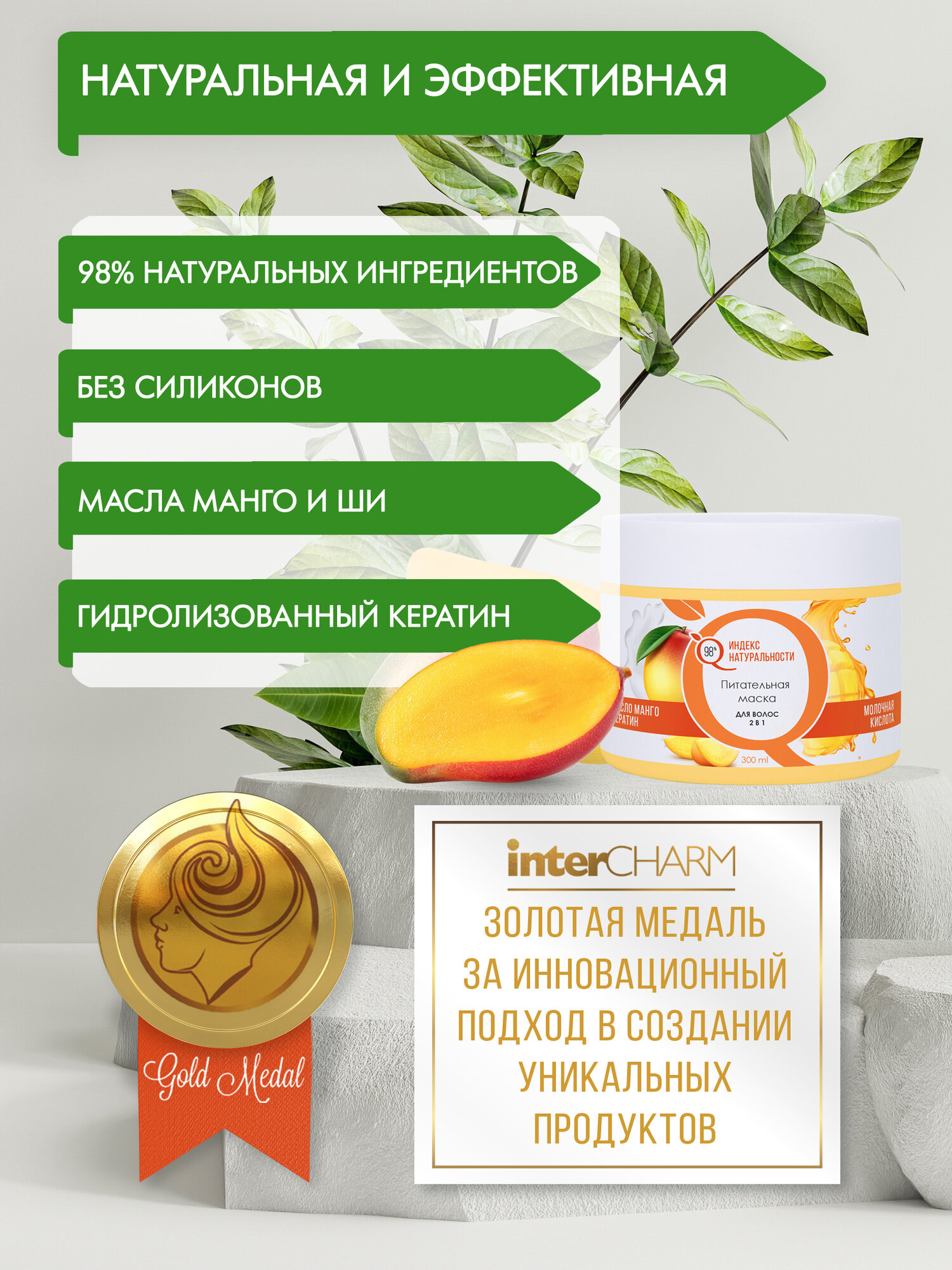 10 цен на Маска ИНДЕКС НАТУРАЛЬНОСТИ для окрашенных волос с кератином и ароматом Манго 500 мл