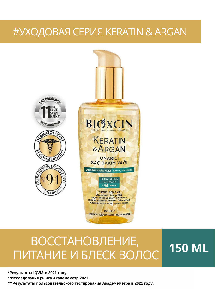 10 цен на Bioxcin Argan & Keratin Oil Восстанавливающее масло для волос Биоксин с Кератином и Аргановым маслом, питание и блеск, против выпадения, Bioxsine, 150мл
