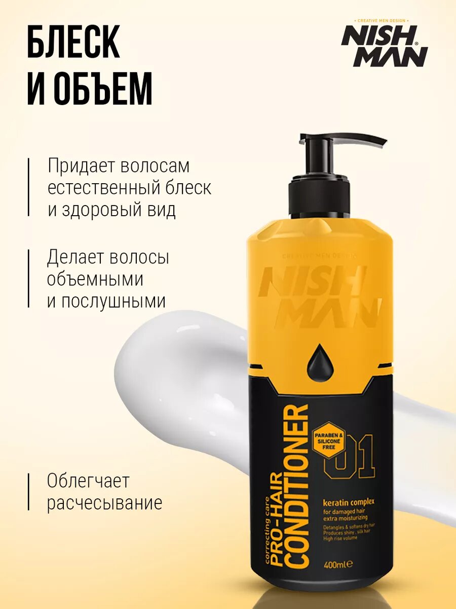 10 цен на Кондиционер для волос профессиональный мужской с кератином NISHMAN, 400мл