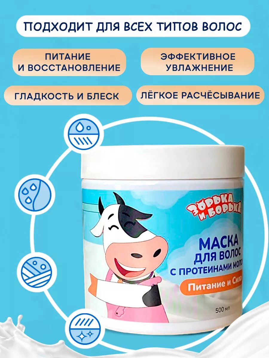 Питательная маска-бальзам для волос с протеинами зорька И борька информация: