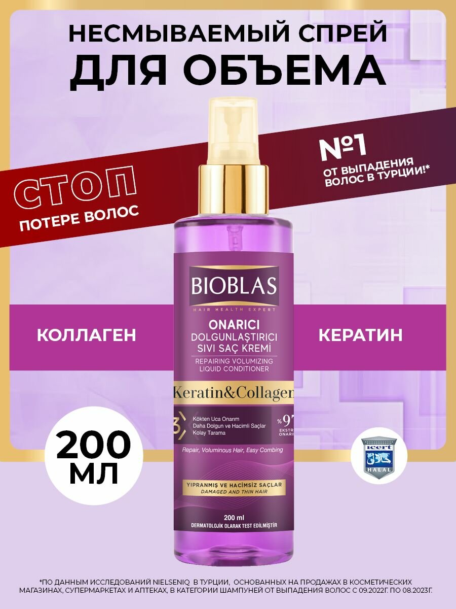 10 цен на Bioblas Термозащитный спрей для придания объема тонким волосам против выпадения с коллагеном и кератином, 200 мл