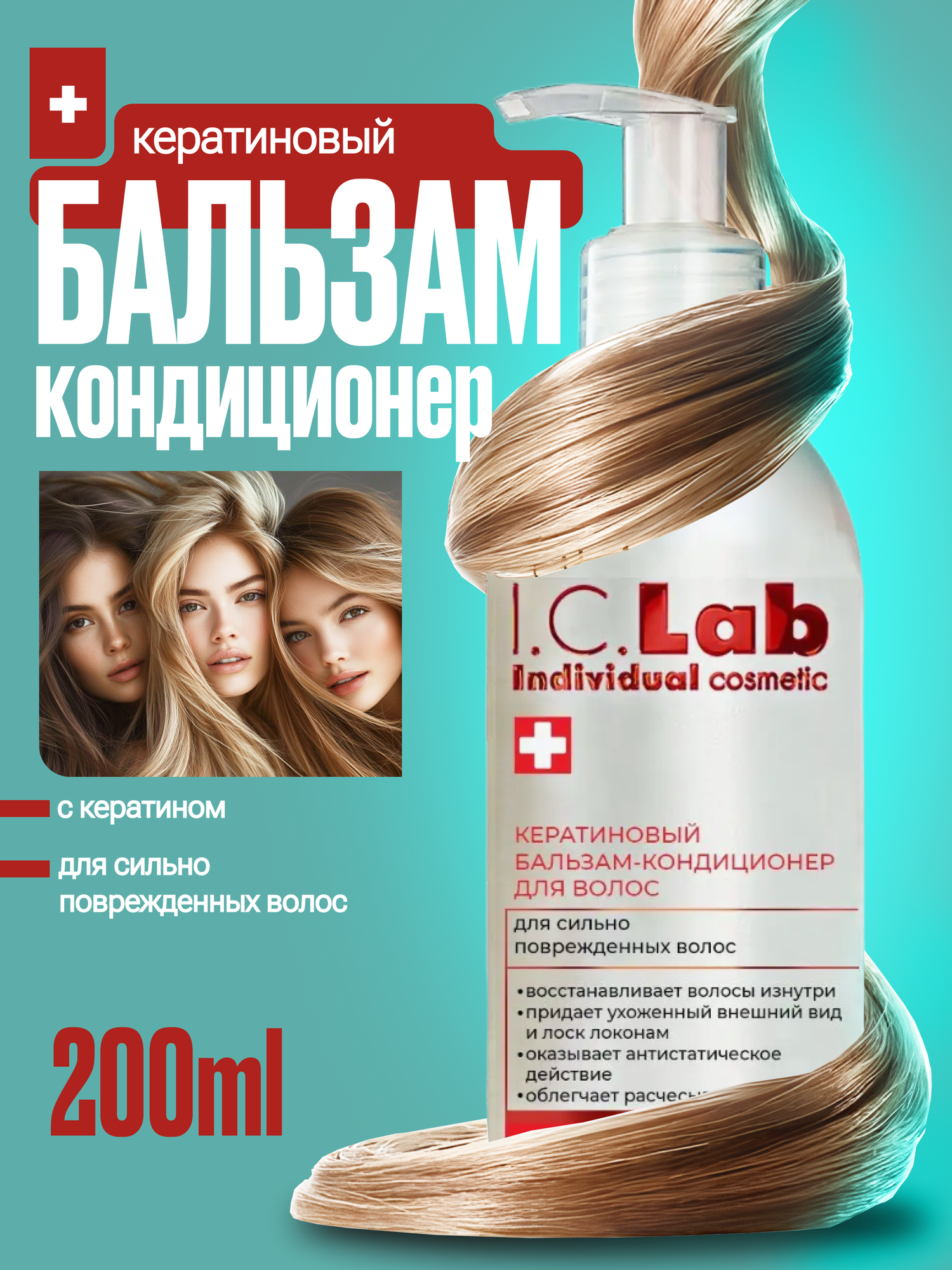 Отзывы на Кератиновый бальзам кондиционер I.C.Lab для сильно поврежденных волос 200 мл