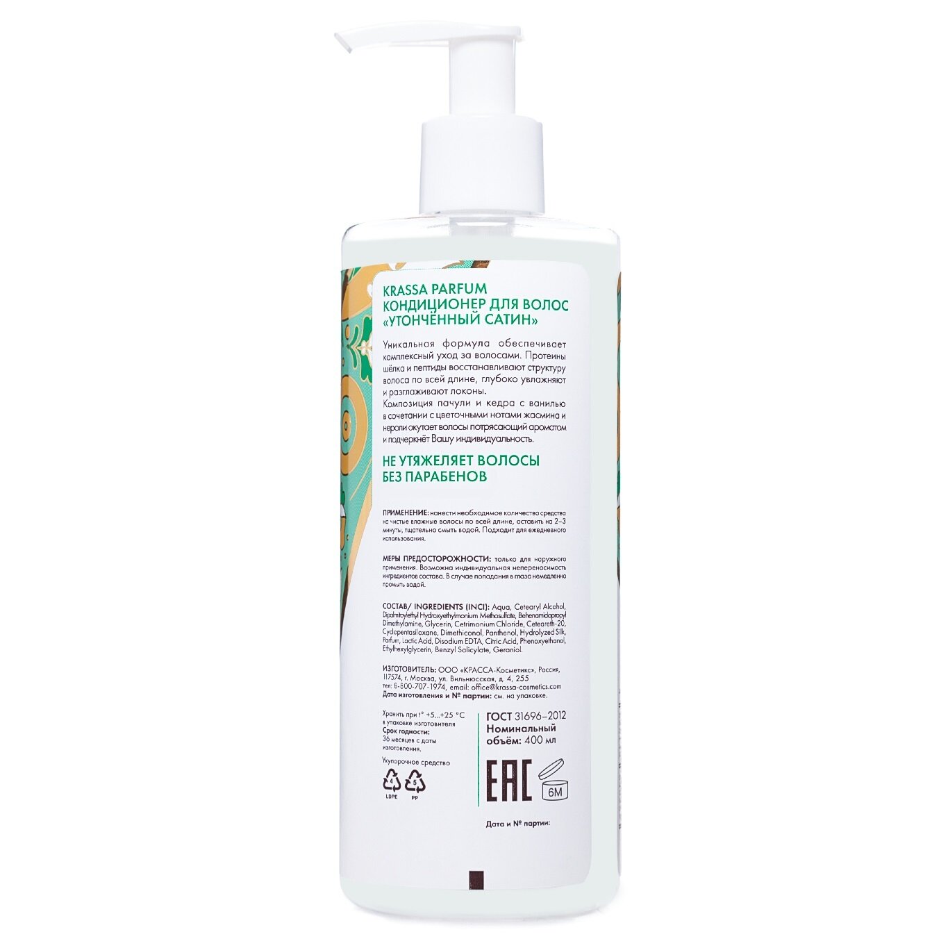 Кондиционер для волос женский Утончённый сатин KRASSA Parfum, 400 мл парфюмированный информация: