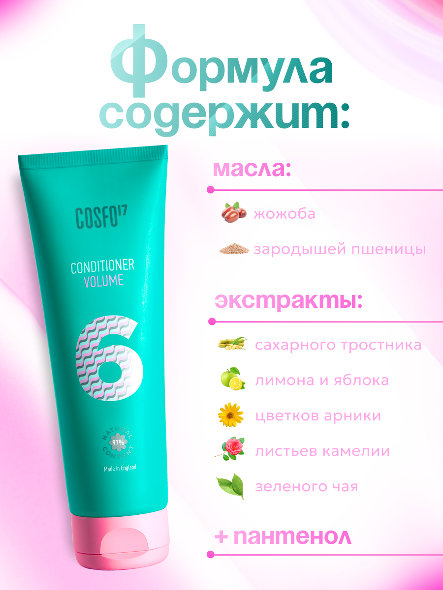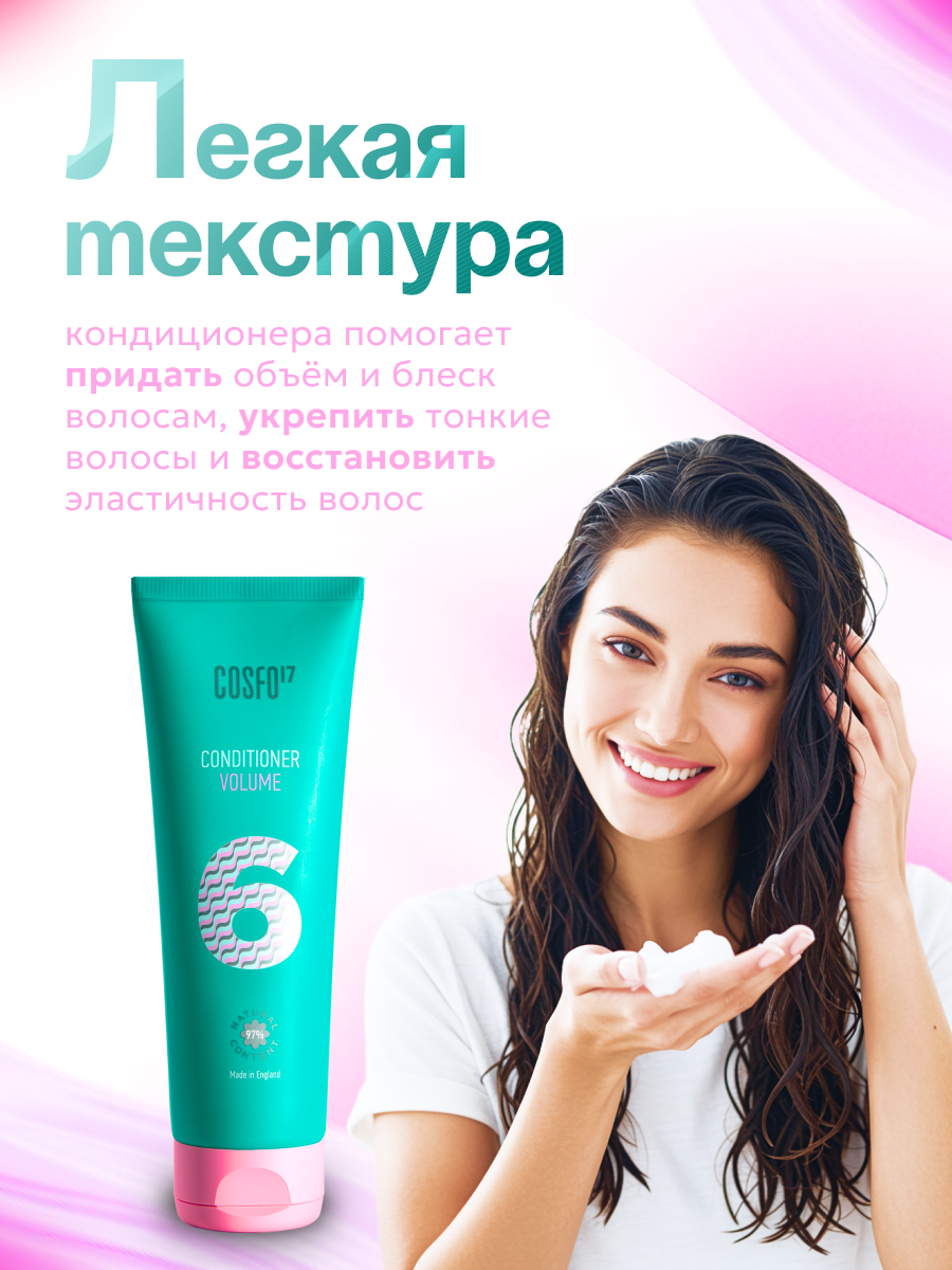 10 цен на Кондиционер COSFO 6 для придания объема "Восстановление и объем" 250 мл