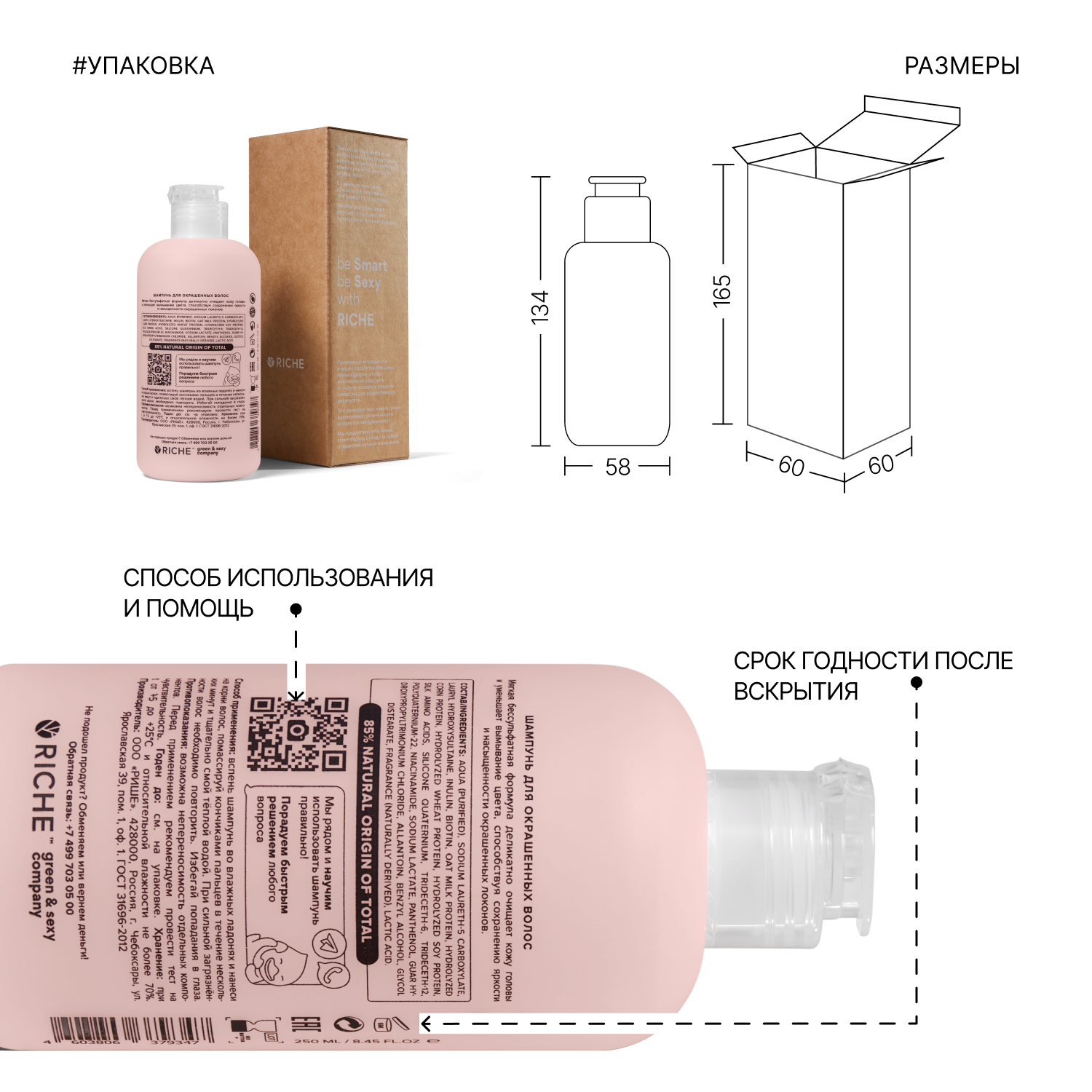 RICHE Мягкоочищающий беcсульфатный шампунь для окрашенных волос с аминокислотами и биотином информация: