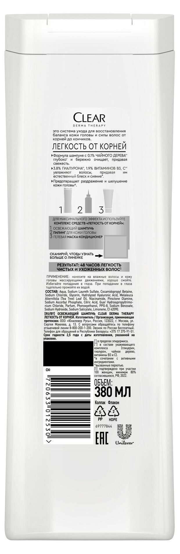 Clear Шампунь для волос Derma Therapy, Легкость от корней, 380 мл, 2 шт информация: