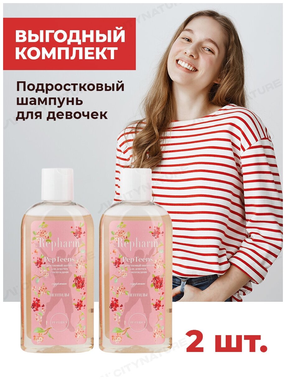 10 цен на Шампунь Repharm PepTeens (пептинс) подростковый с пептидами для девочек, 200 мл- 2 шт