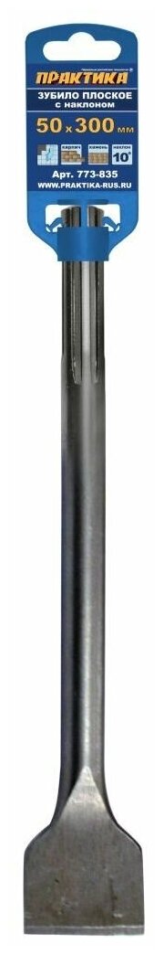 Зубило SDS-MAX плоское ПРАКТИКА 50 х 300 мм , для плитки, наклон 10 градусов, для плитки, наклон 10 градусов (50х300мм, для плитки, наклон 10 град.) информация: