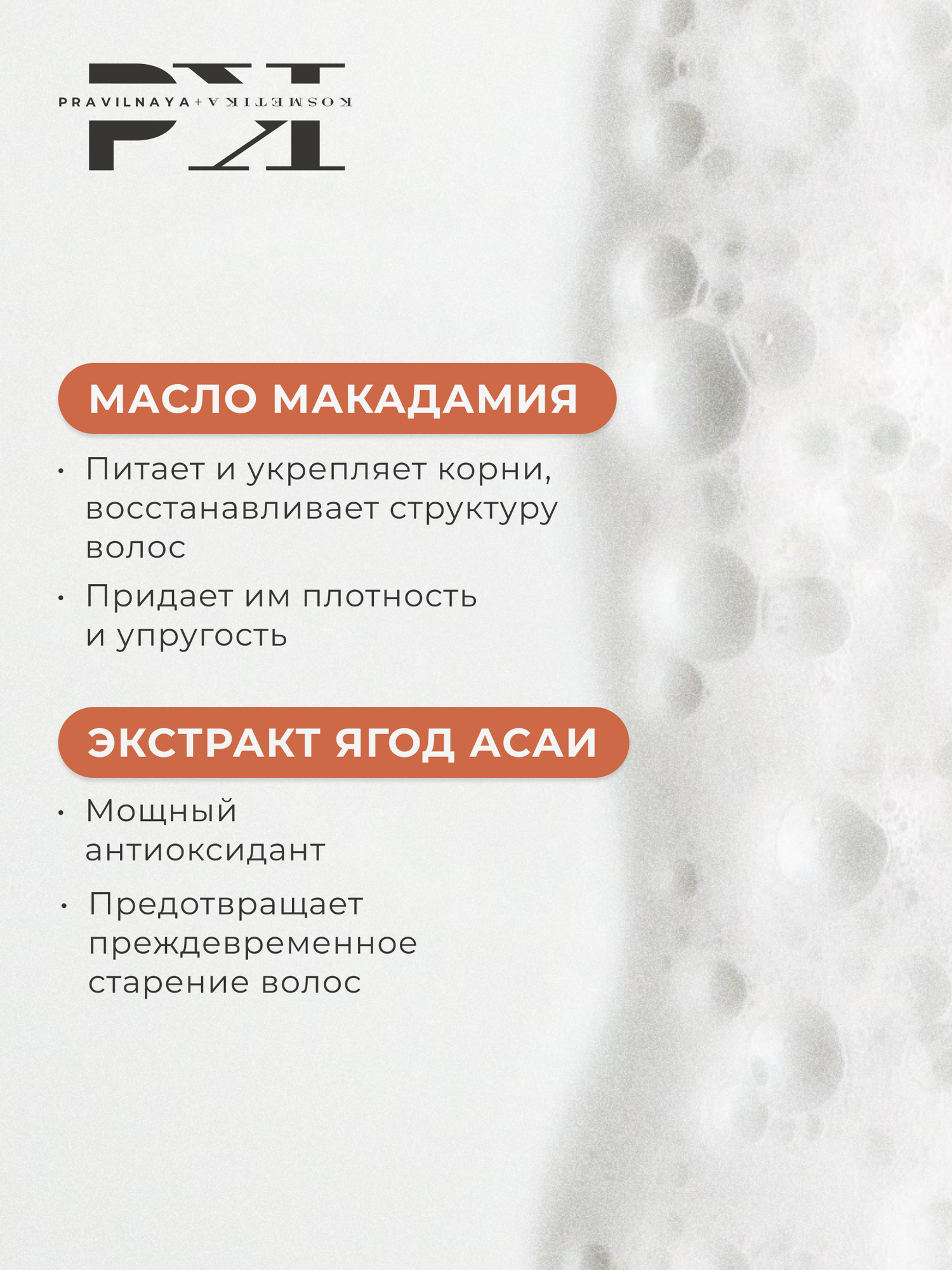 Отзывы на Шампунь для восстановления поврежденных волос Pravilnaya Kosmetika, увлажняющий, Макадамия & Ягоды Асаи, 250 мл