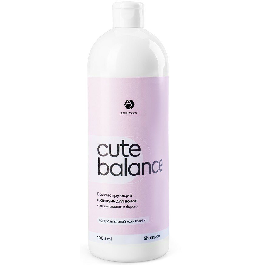 Adricoco, CUTE BALANCE - балансирующий шампунь для волос с лемонграссом и бораго, 1000 мл информация: