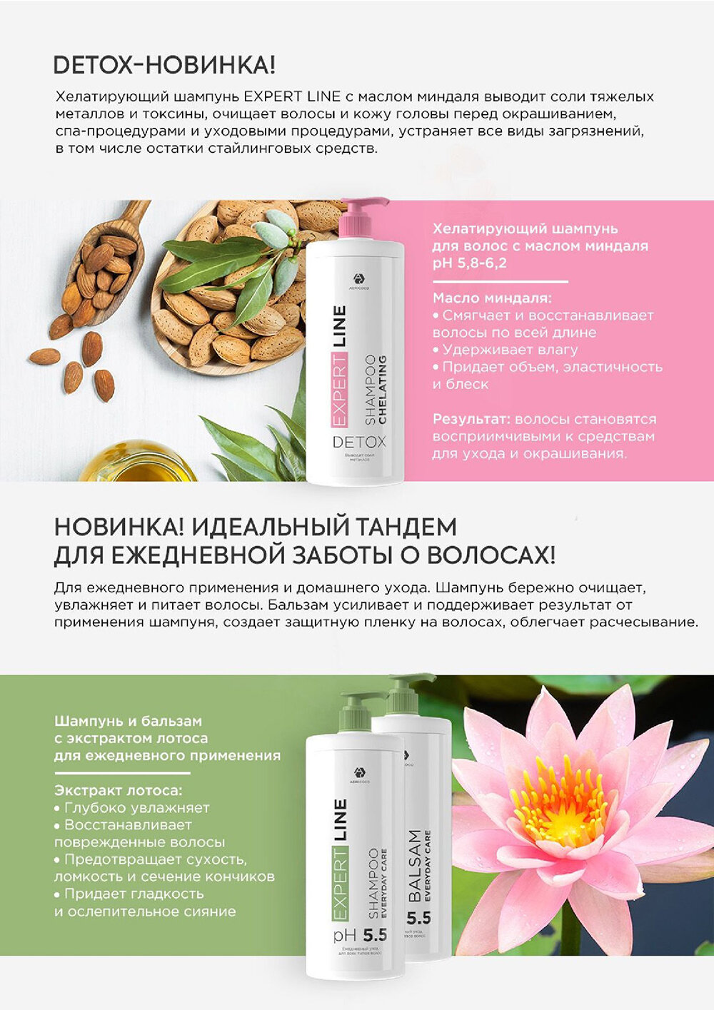 10 цен на Adricoco, EXPERT LINE - шампунь для ежедневного применения с экстрактом лотоса, 1000 мл