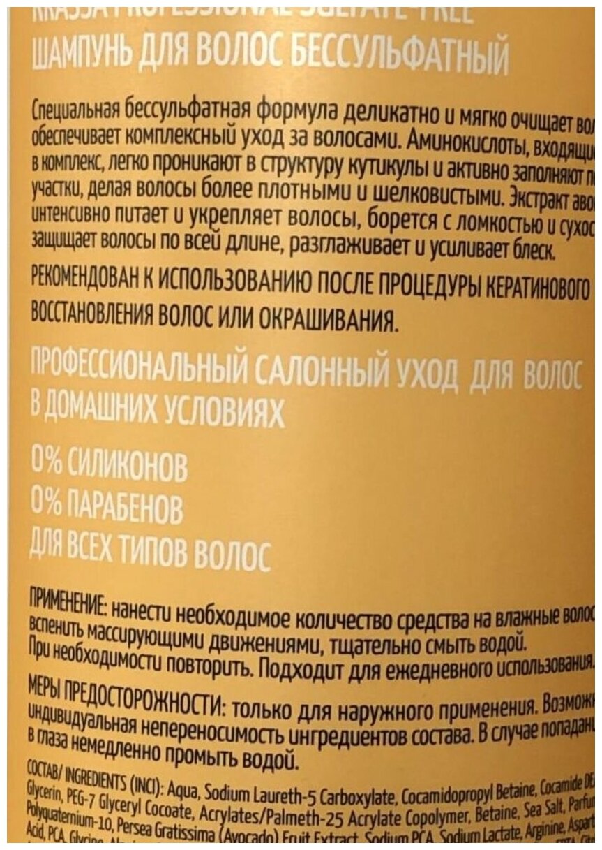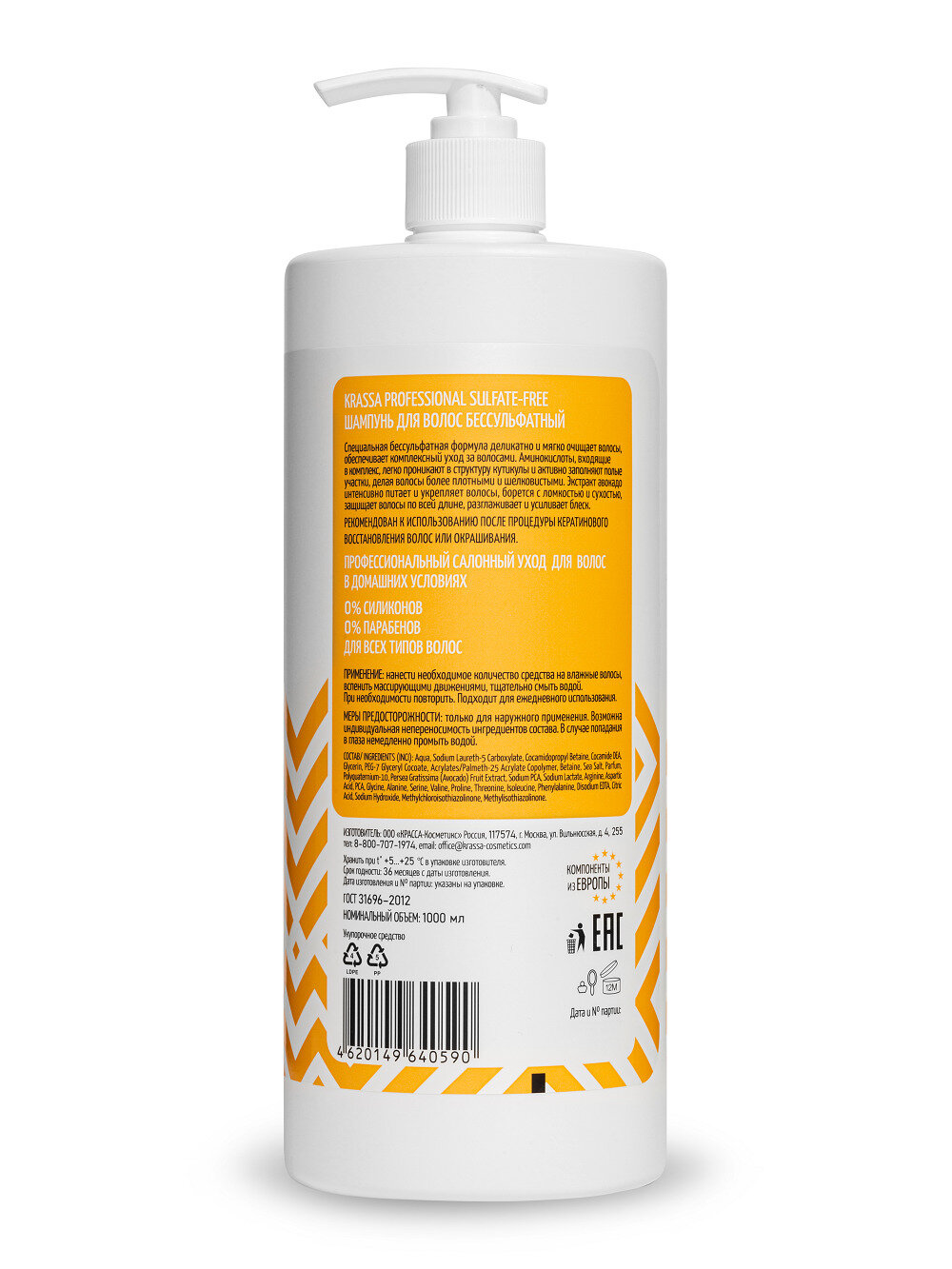 KRASSA Professional Sulfate-free Шампунь для волос бессульфатный с дозатором информация: