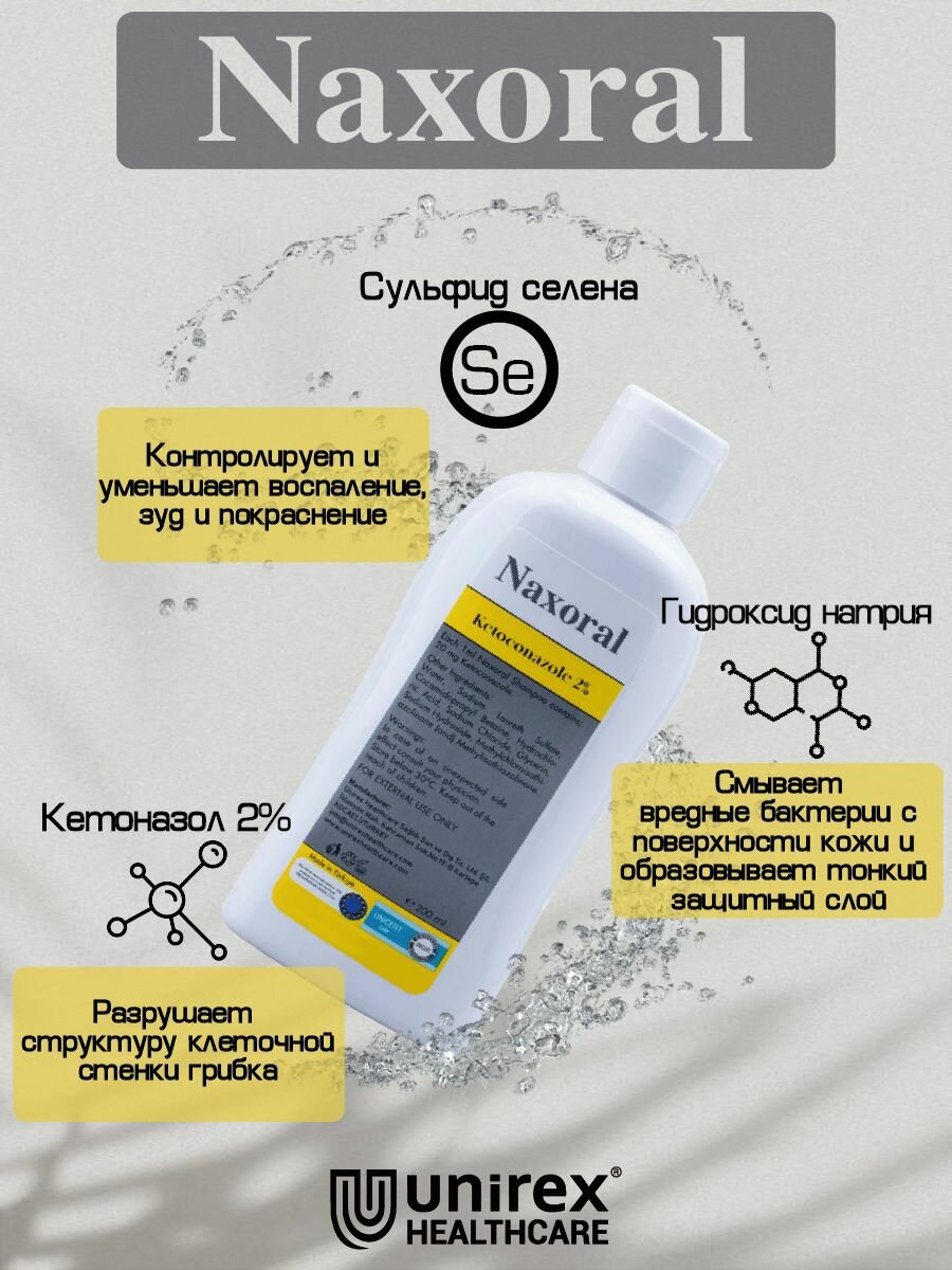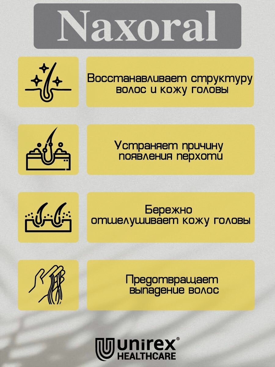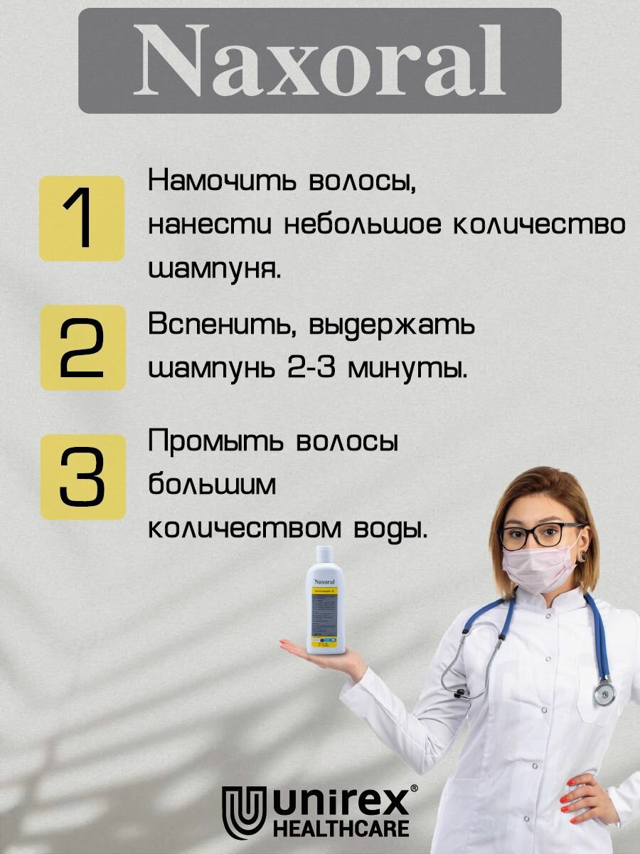 Лечебный противогрибковый шампунь против перхоти от себореи и псориаза Naxoral Dandruff Shampoo информация:
