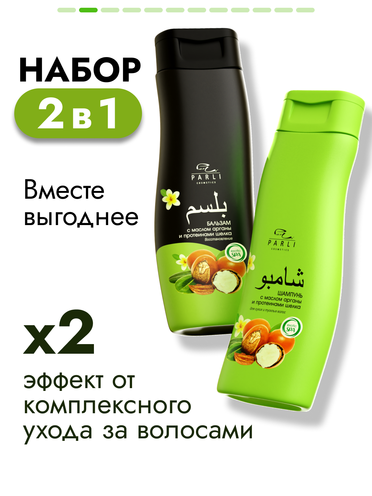 10 цен на Набор шампунь и бальзам для волос Parli, с протеинами шёлка, увлажняющий