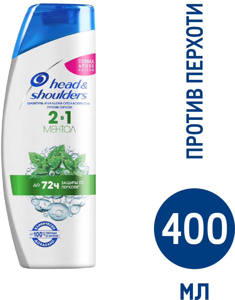 Отзывы на HEAD & SHOULDERS Шампунь и бальзам - ополаскиватель для волос от перхоти мужской женский Ментол 2в1 400мл, ,
