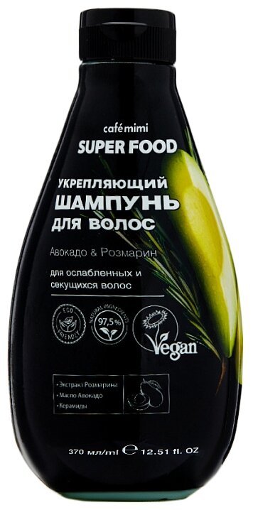 10 цен на Шампунь для волос Укрепляющий Авокадо & Розмарин Cafe mimi 370 мл