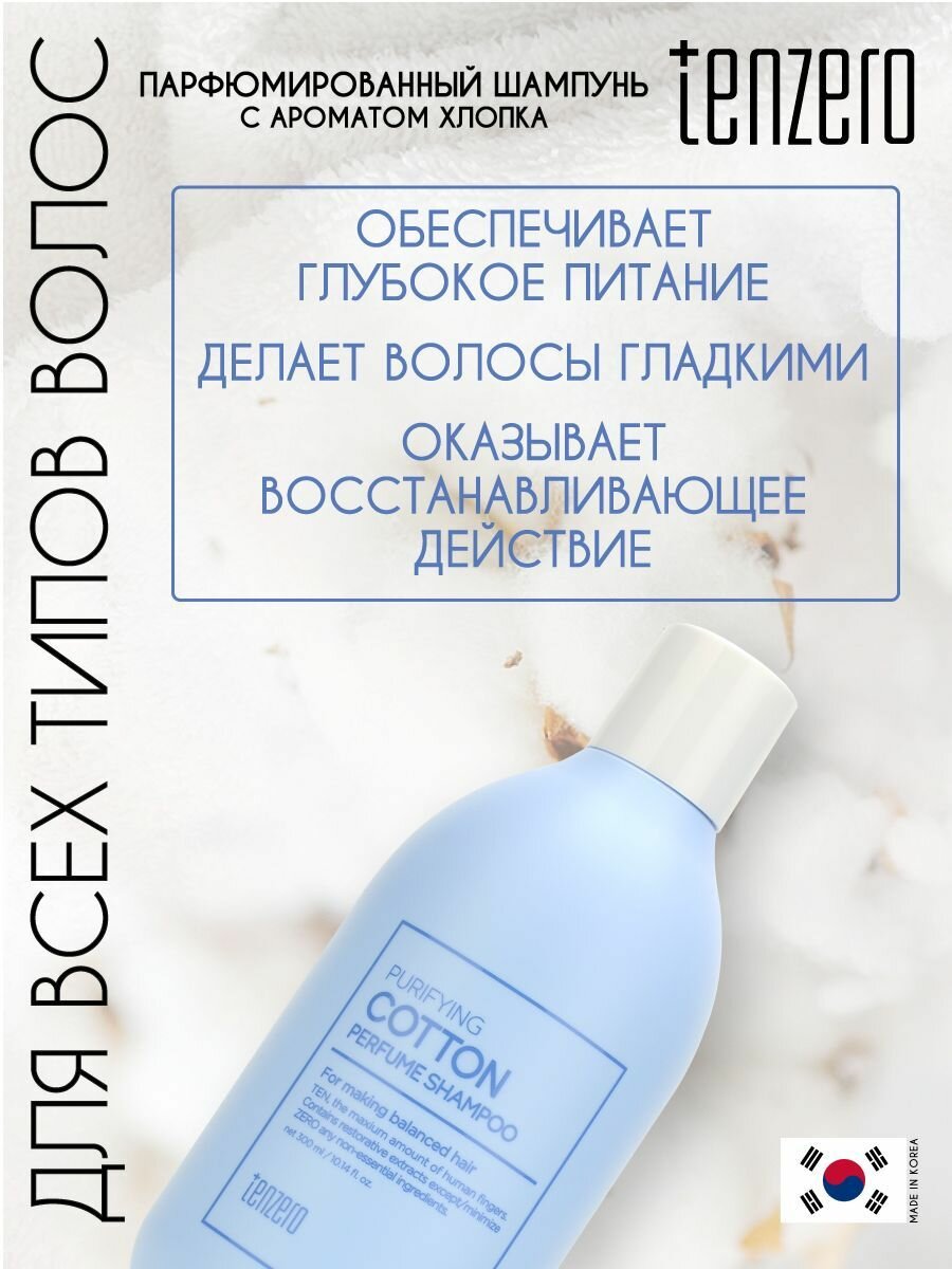 10 цен на TENZERO Парфюмированный шампунь с ароматом хлопка, 300мл