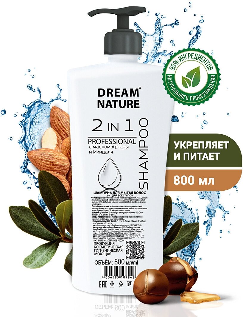 Шампунь для волос женский DREAM NATURE 2в1 800 мл информация: