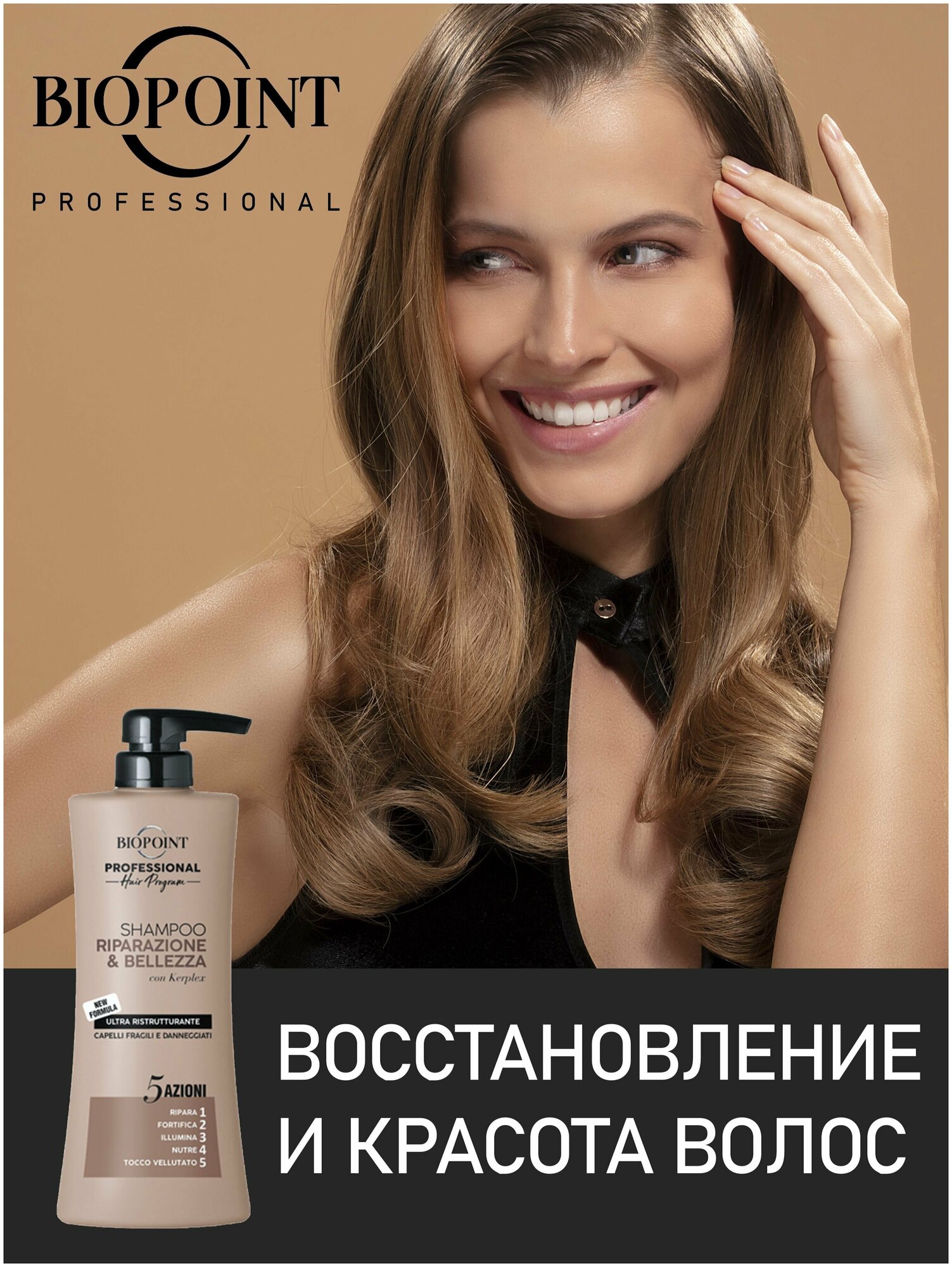 Шампунь для волос женский профессиональный BIOPOINT PROFESSIONAL восстановление И красота/ RIPARAZIONE & BELLEZZA 400 мл информация: