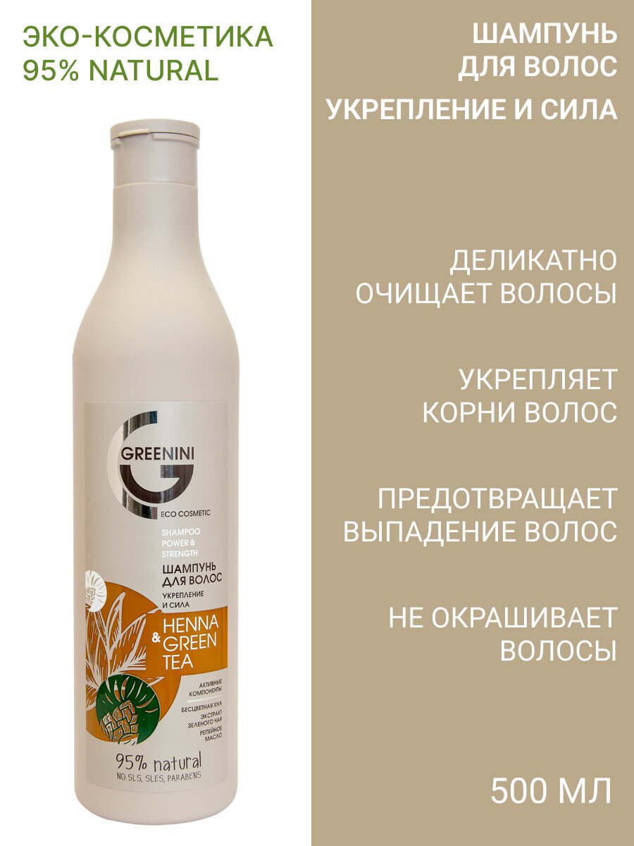 Отзывы на Greenini Шампунь для волос Укрепление и сила Henna & Green Tea 500 мл
