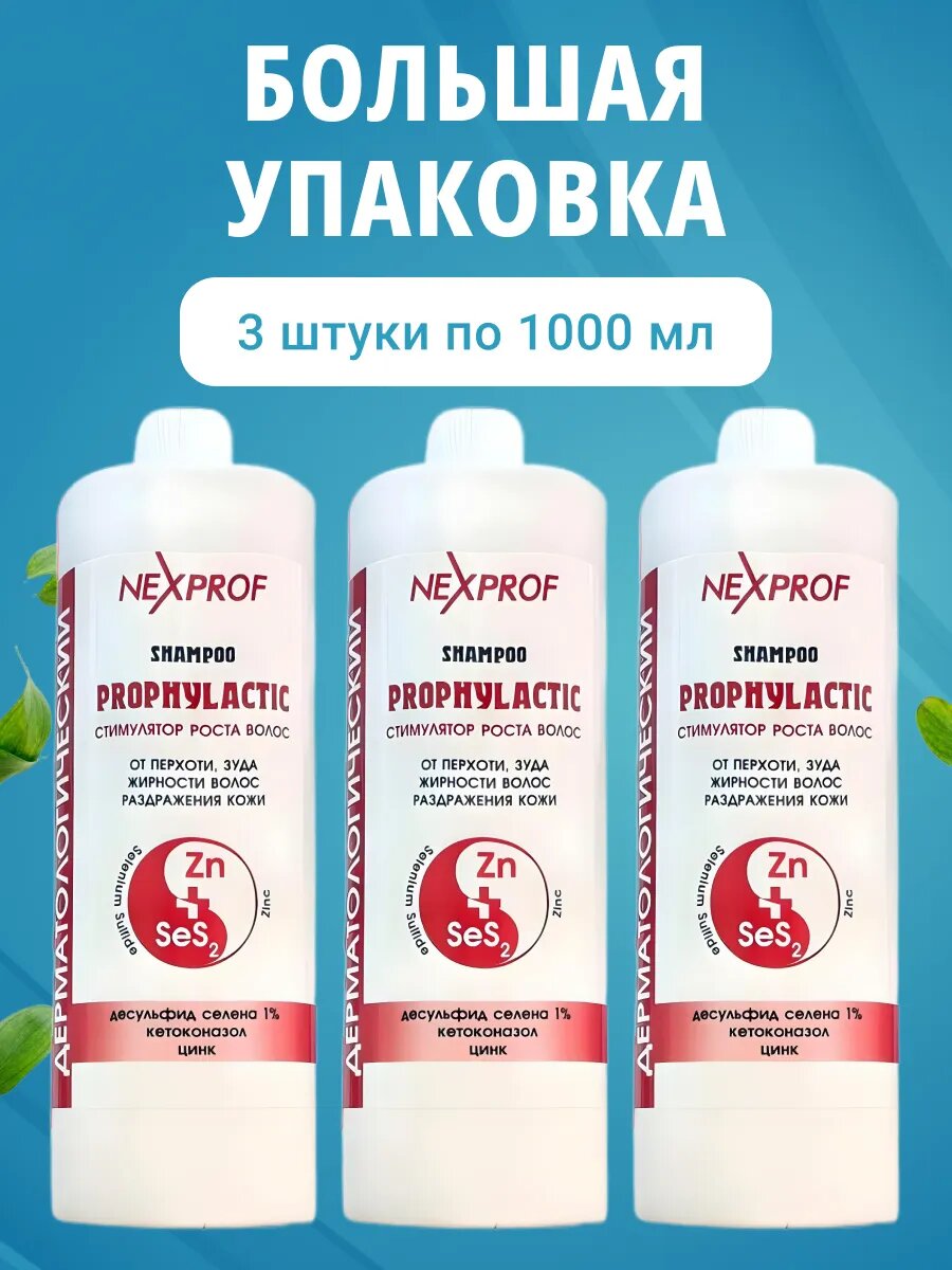 10 цен на Шампунь NEXPROF для волос от перхоти 1000 мл 3 шт