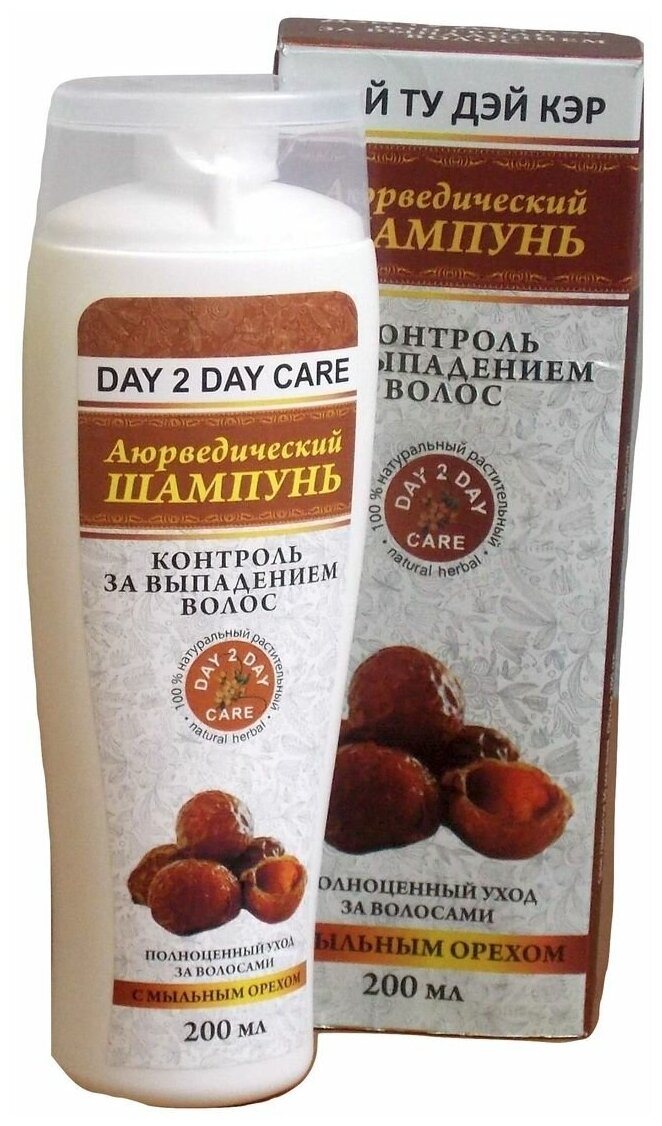 10 цен на Шампунь Day 2 Day Care Аюрведический Контроль выпадения волос с мыльным орехом (Shampoo Hair Fall Control With Soap Nut), 200 мл