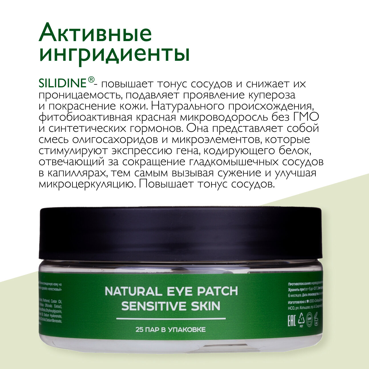 Патчи для глаз тканевые SIBIRBOTANIQ натуральные уменьшают покраснения 50 шт. информация: