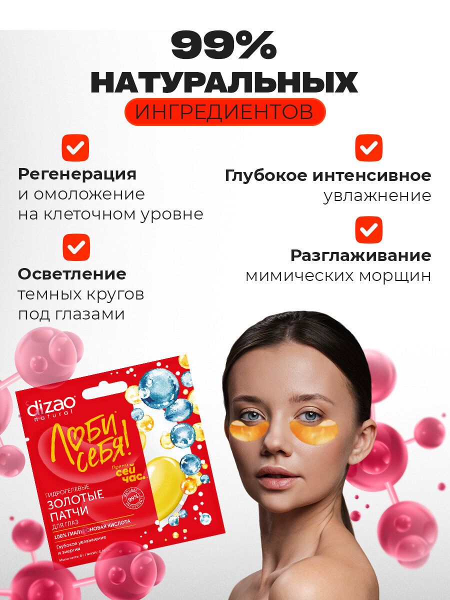 Патчи для глаз Dizao Люби себя гидрогелевые золотые 100% Гиалуроновая кислота 1шт*5шт информация: