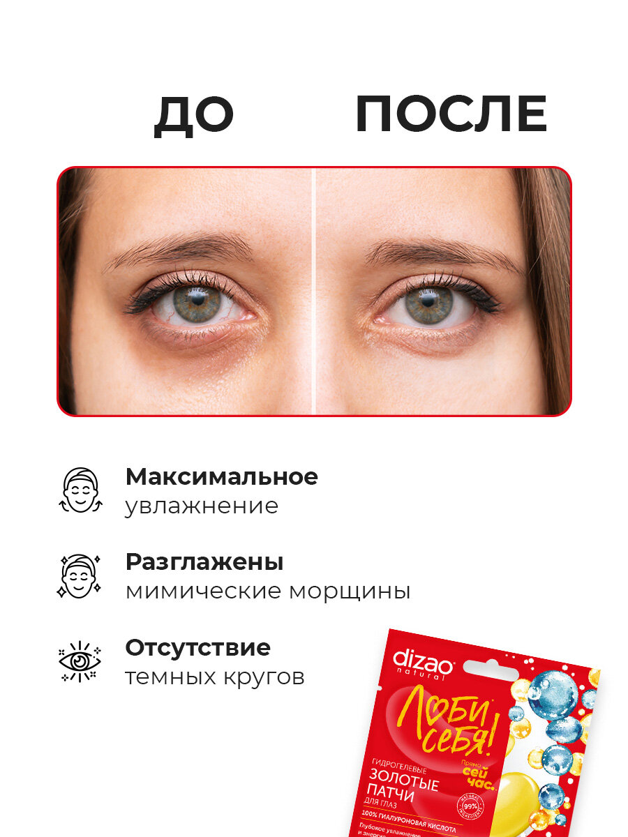 Отзывы на Патчи для глаз Dizao Люби себя гидрогелевые золотые 100% Гиалуроновая кислота 1шт*5шт