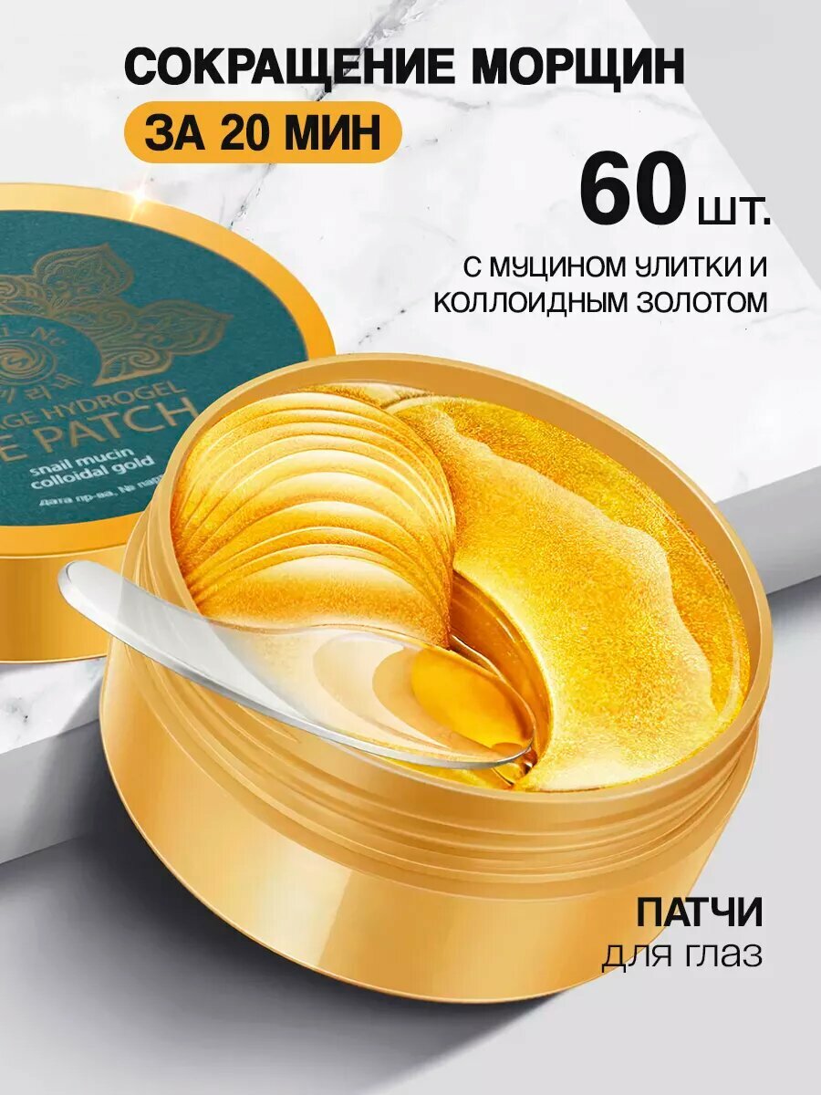 10 цен на Гидрогелевые антивозрастные патчи Mi-Ri-Ne для области вокруг глаз с муцином улитки и коллоидным золотом 90 г