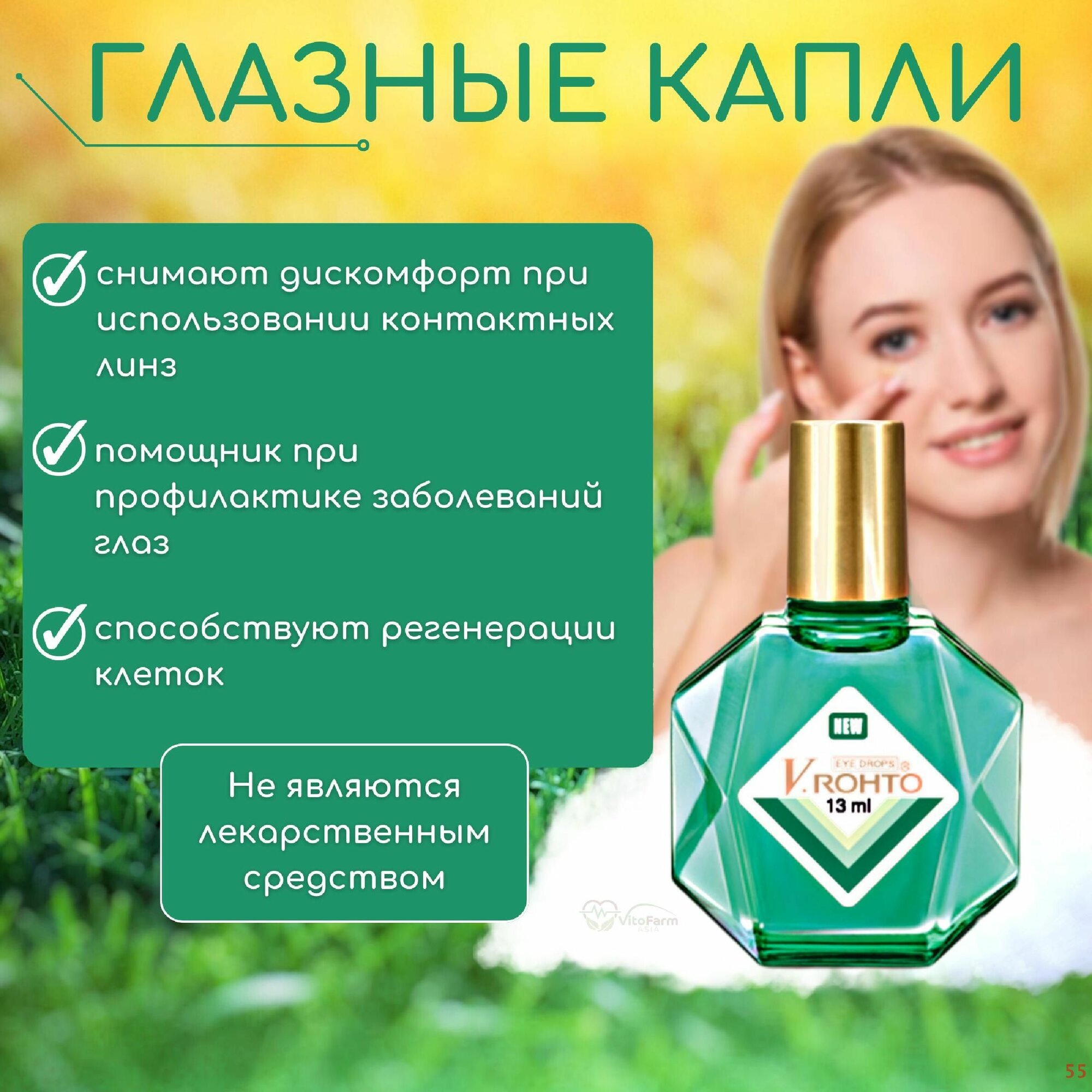 10 цен на V.Rohto New капли для глаз витаминизированные для увлажнения, 13 мл.
