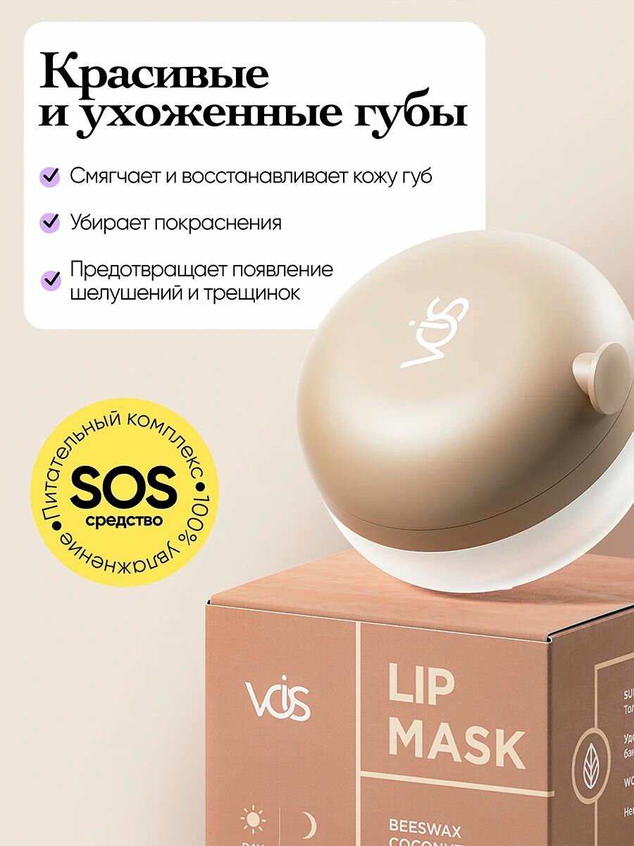 Отзывы на VOIS Маска для губ увлажняющая от сухости и трещин с пчелиным воском, пантенолом маслом ши, бальзам для губ восстанавливающий 10 мл