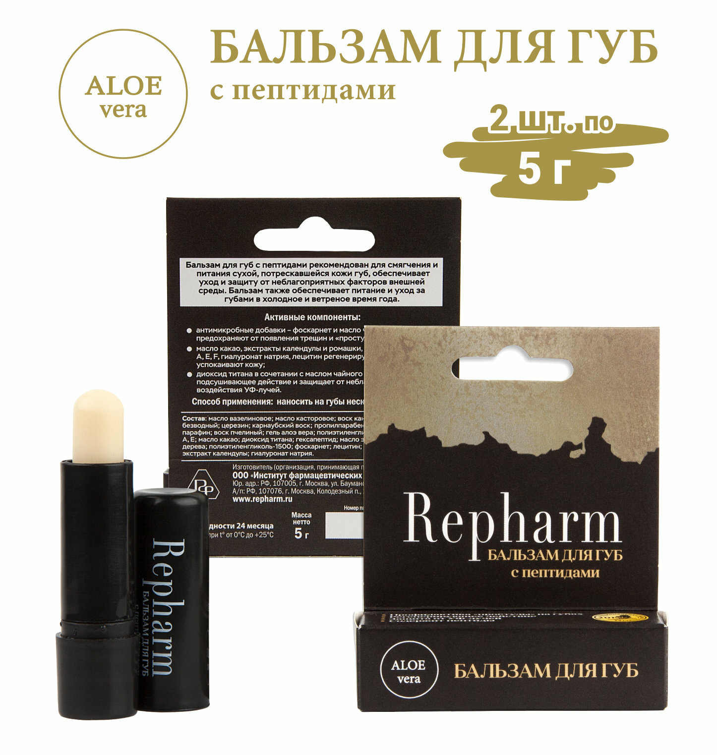 Бальзам для губ Repharm с пептидами, 2 штуки по 5 грамм информация: