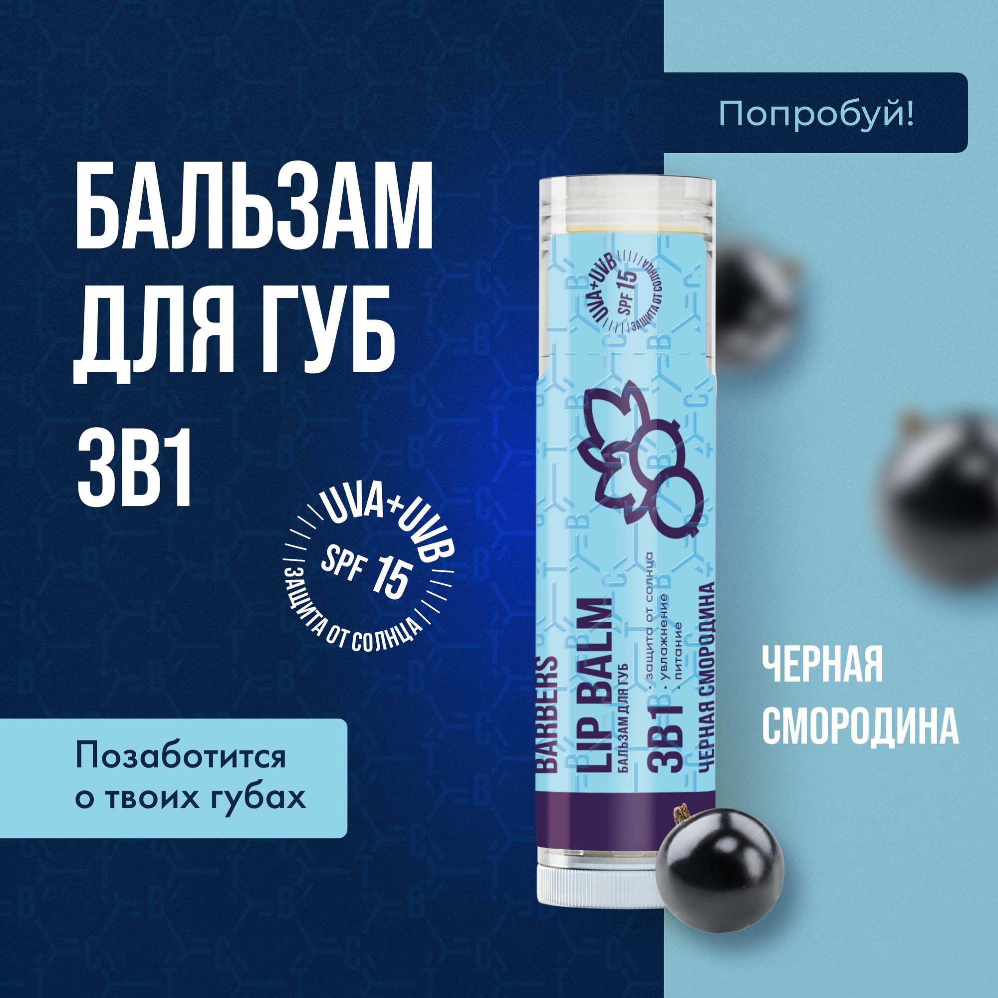 10 цен на The Chemical Barbers Бальзам для губ 3 в 1 черная смородина