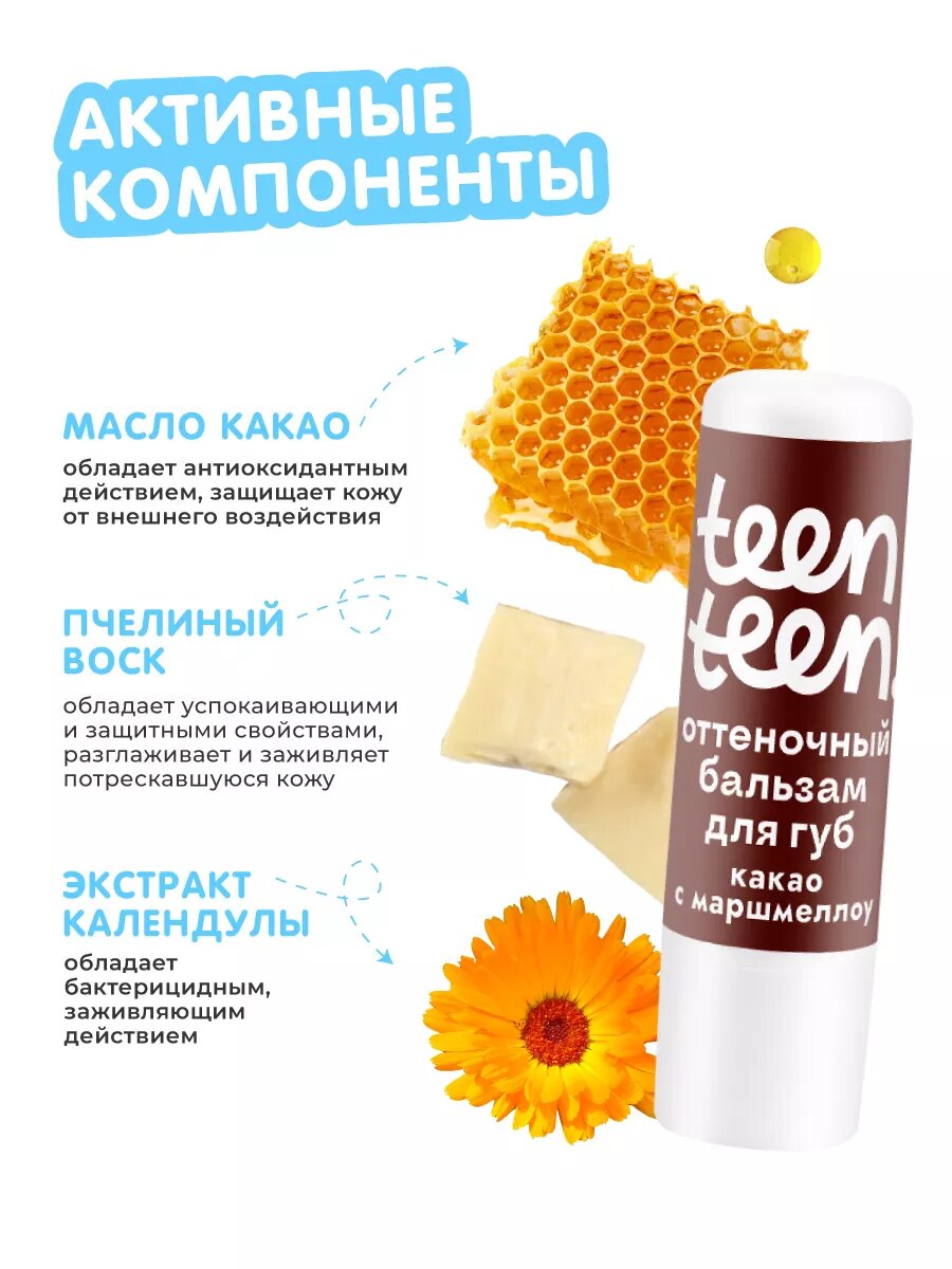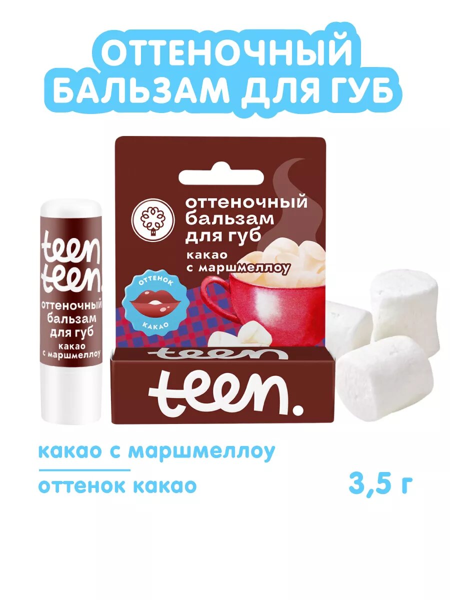 Оттеночный бальзам для губ Teen-teen Какао с маршмеллоу, увлажнение, питание, защита, оттенок какао, 3,5г Дом Природы информация: