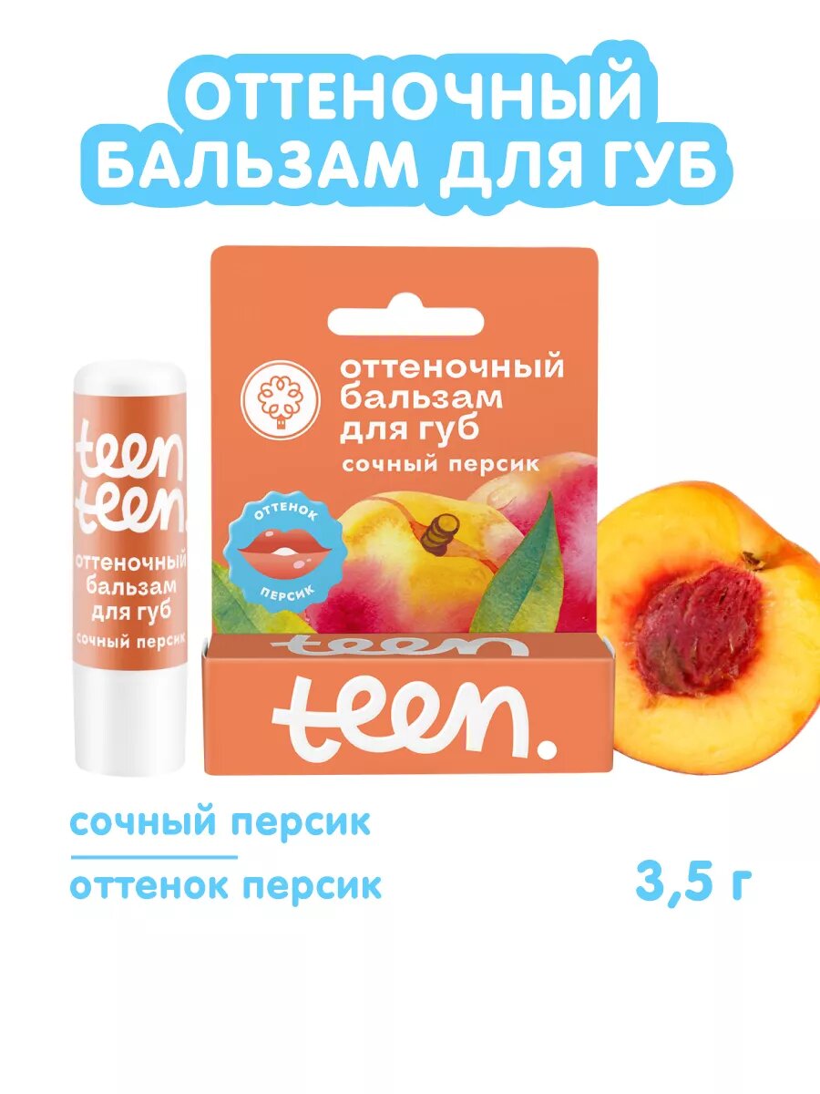 10 цен на Оттеночный бальзам для губ Teen-teen Сочный персик, увлажнение, питание, защита, оттенок персик, 3,5г Дом Природы