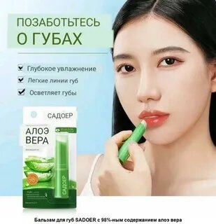 Отзывы на Бальзам для губ Sadoer "CleanSkin", с алоэ, зеленый, увлажняющий, 3 мл