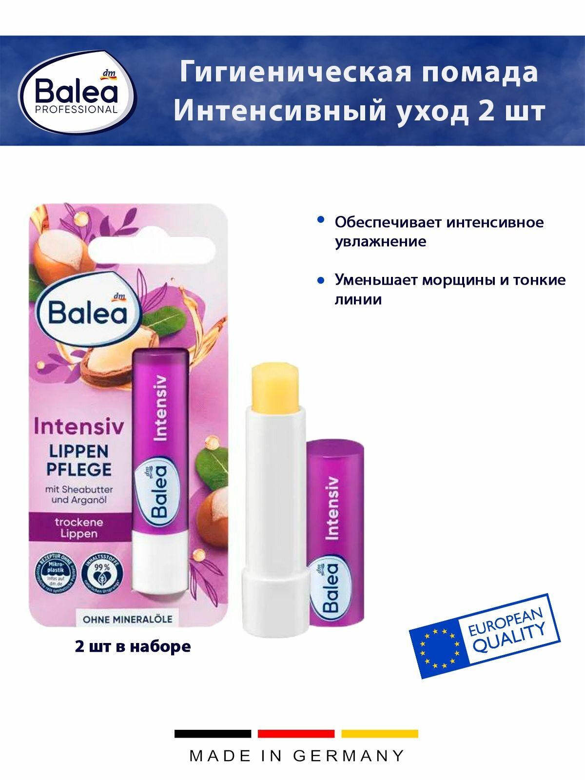 Гигиеническая помада Balea - Интенсивный уход за губами, 4.8г, 2шт информация: