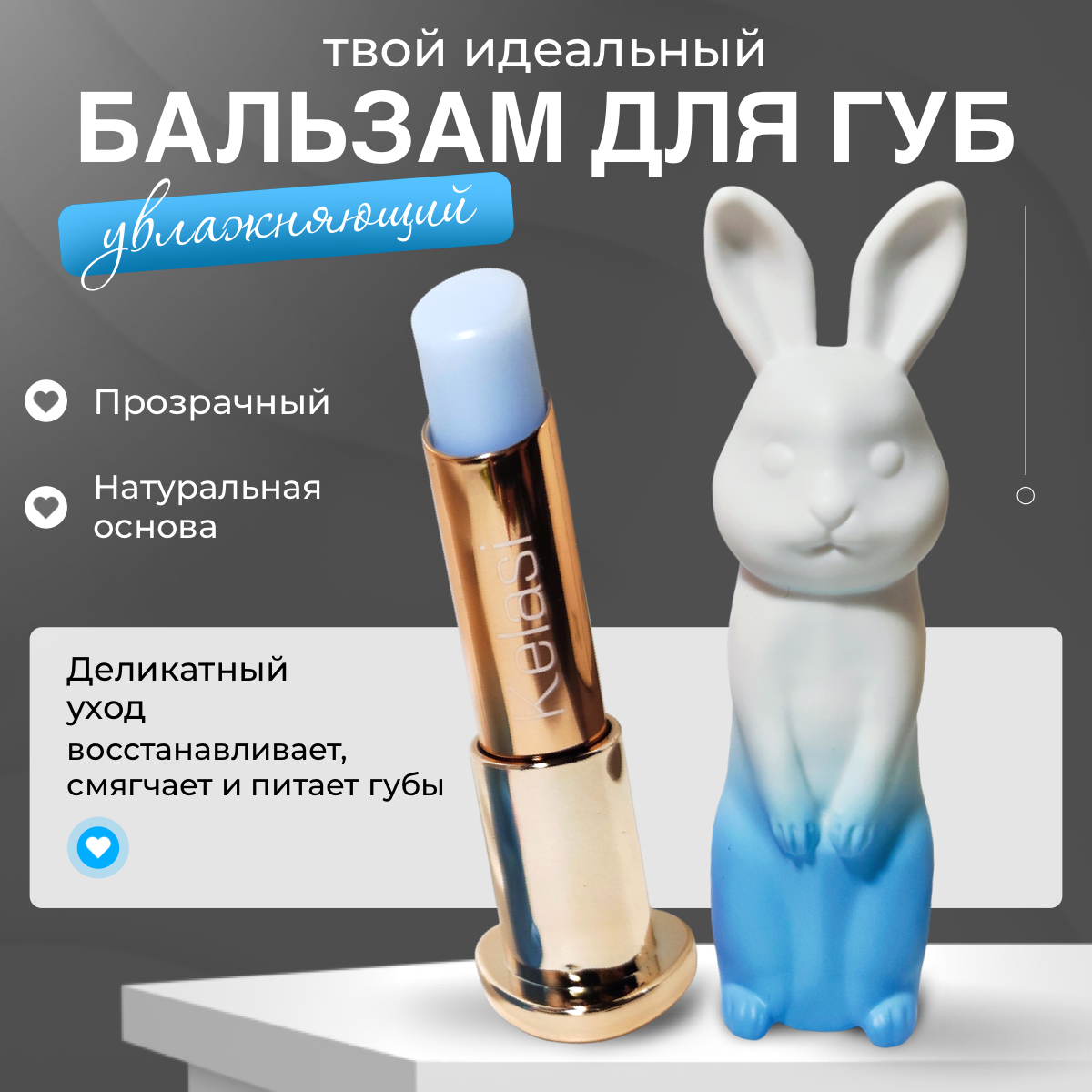Гигиенический бальзам для губ в виде зайчика, Kelasi синий. информация: