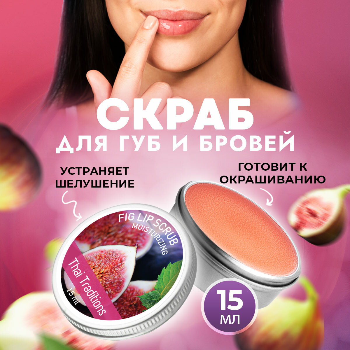Отзывы на Скраб для губ и бровей сахарный натуральный для снятия водостойкого макияжа и перед окрашиванием очищающий с маслами Thai Traditions Инжир, 15 мл.