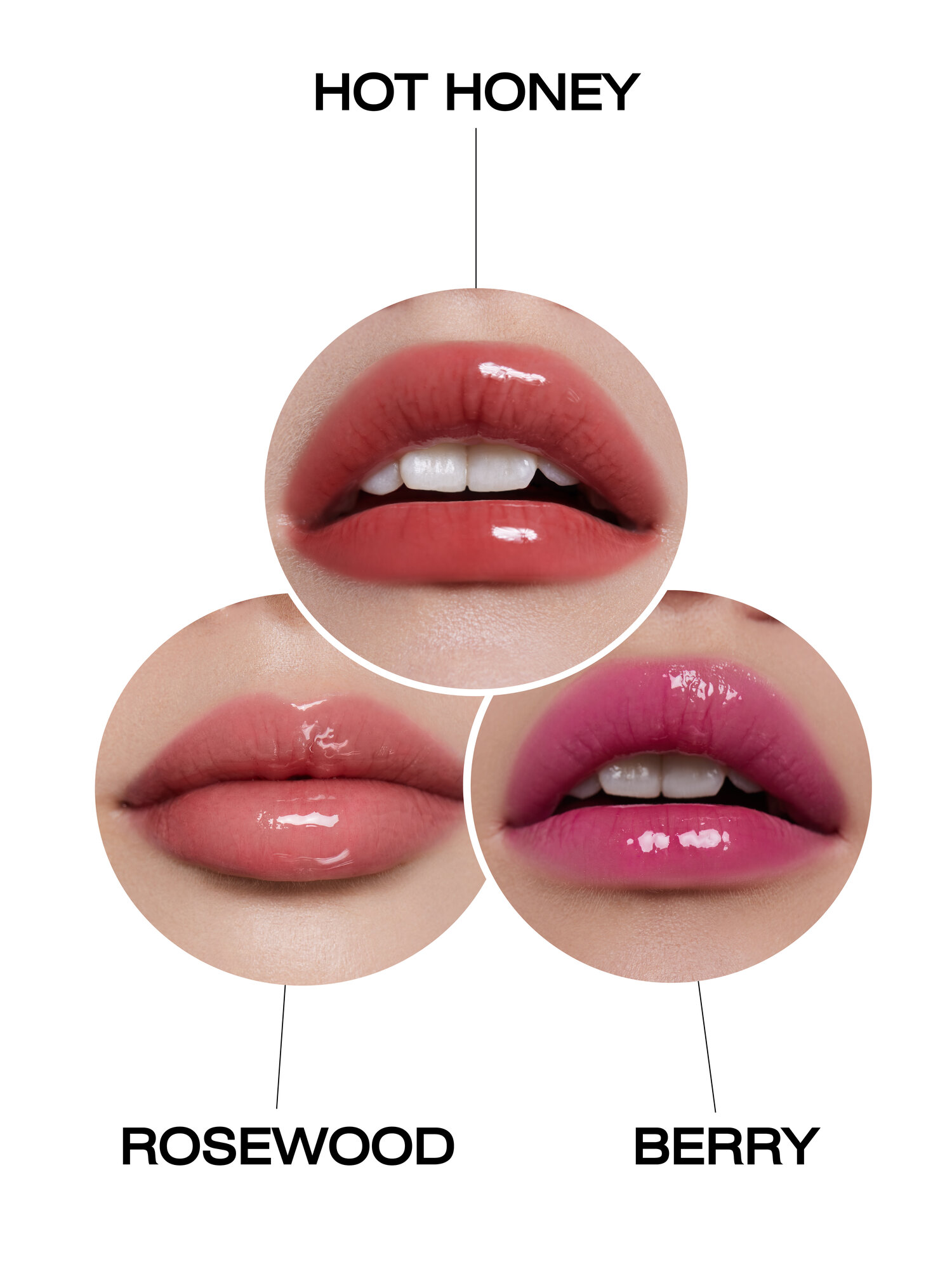 10 цен на Набор из трёх масел для губ GLOW ME HONEY PIE (HOT HONEY, BERRY, ROSE WOOD)
