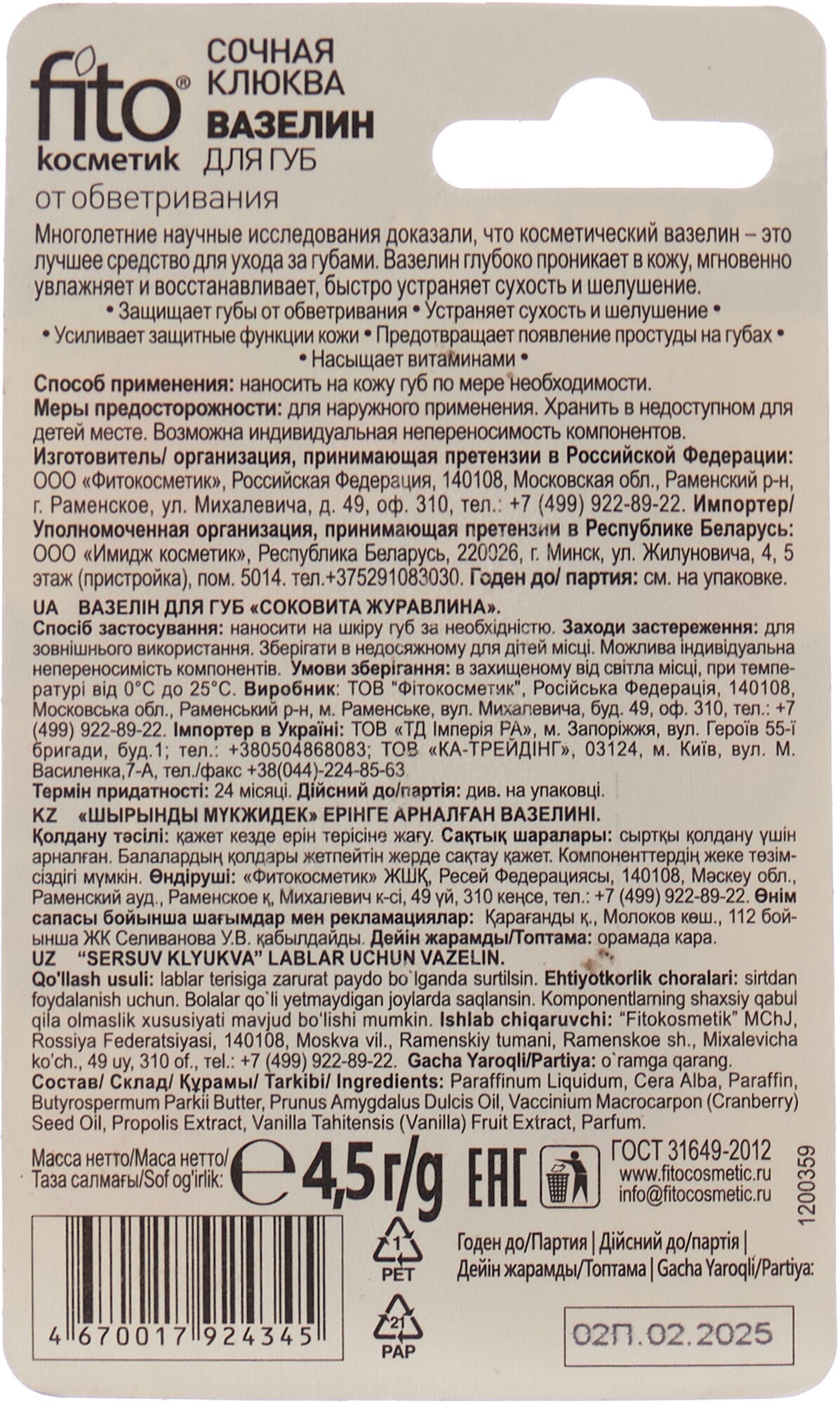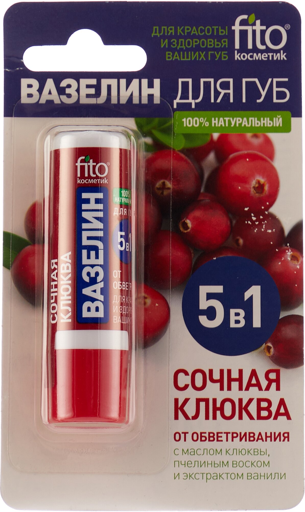 10 цен на Вазелин для губ Fito косметик "Сочная клюква", увлажняющий, SPF-защита