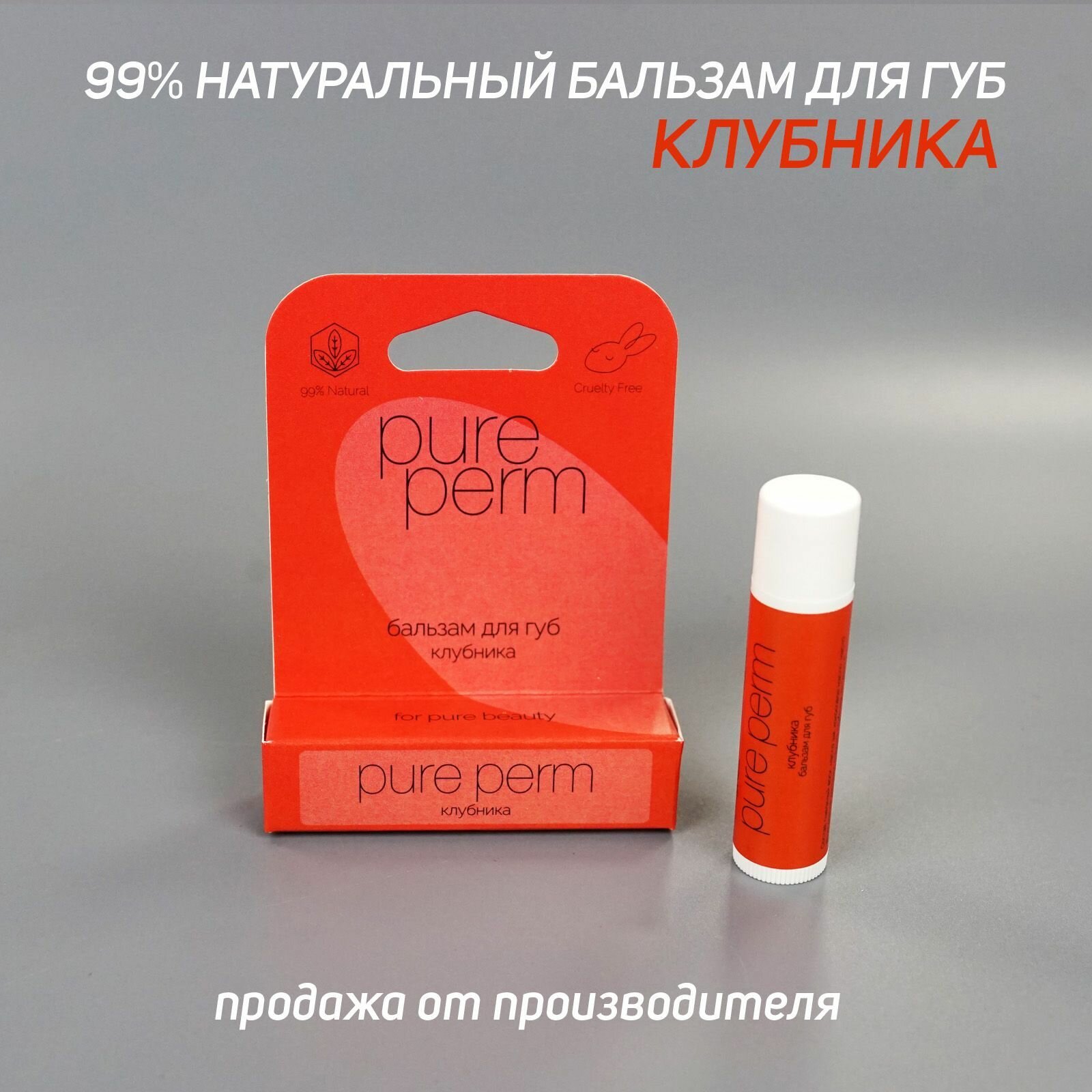Натуральный бальзам для губ с пчелиным воском Pure Perm Клубника информация: