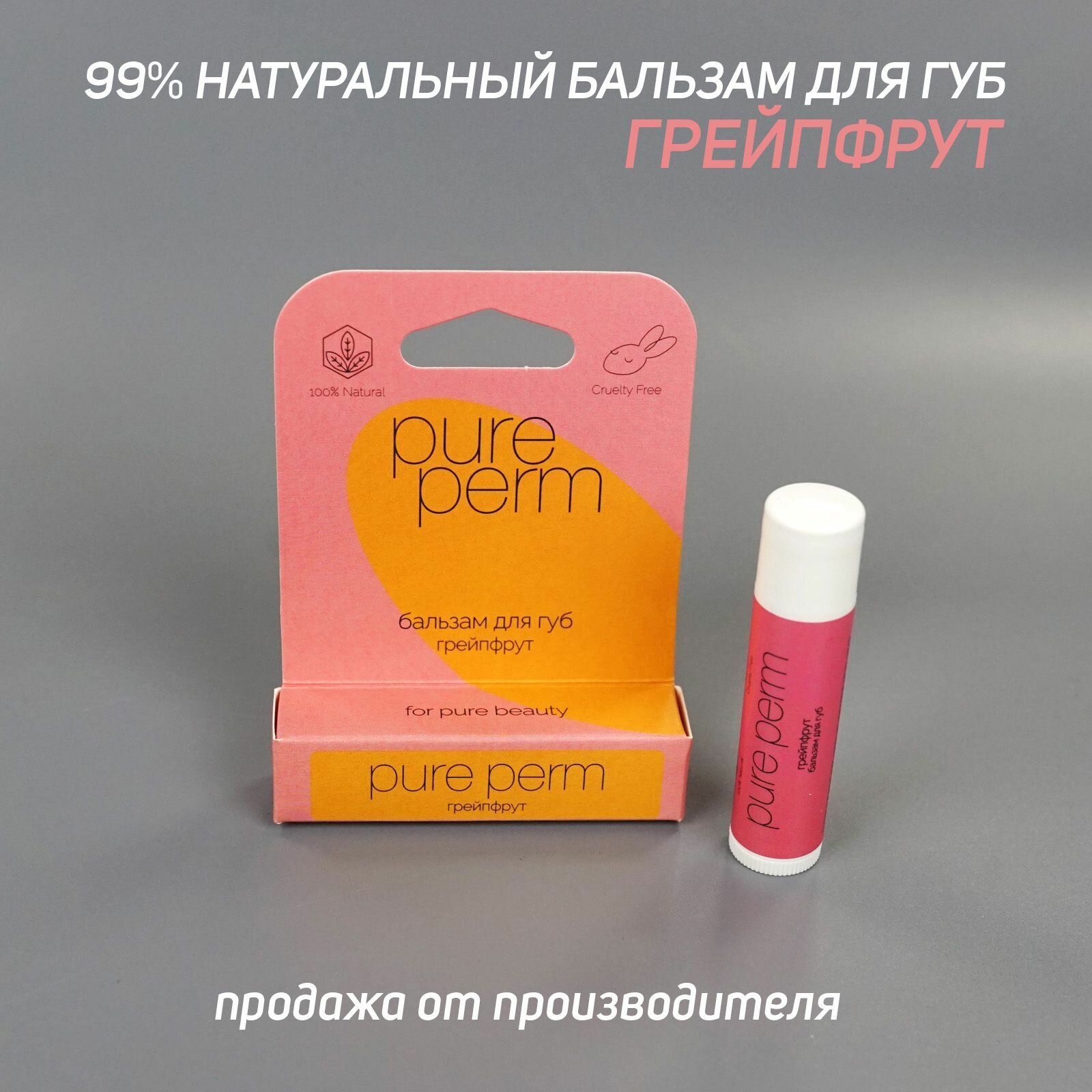 10 цен на Натуральный бальзам для губ с пчелиным воском Pure Perm Грейпфрут