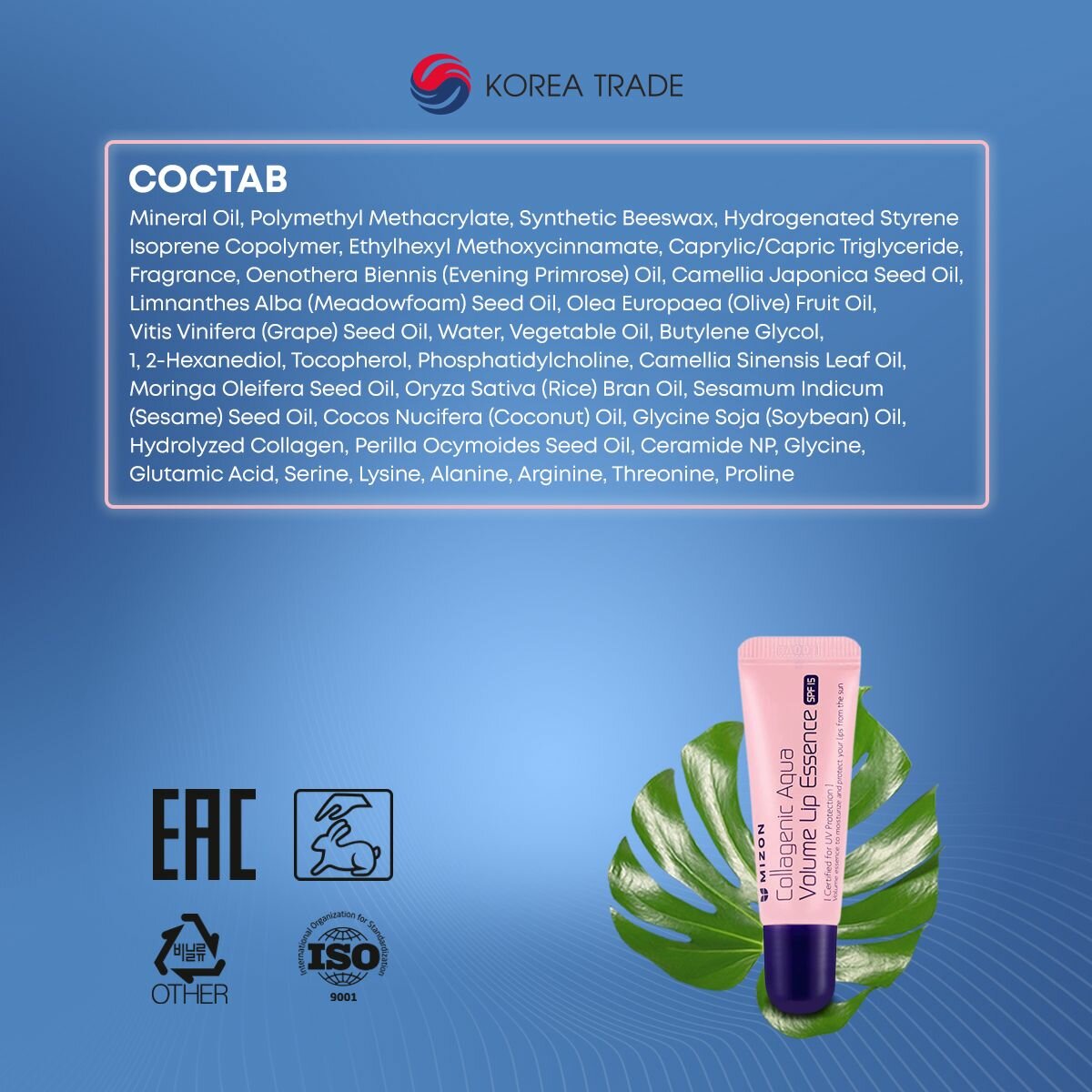 MIZON Бальзам для губ Collagenic Aqua Volume Lip Essence 10мл информация: