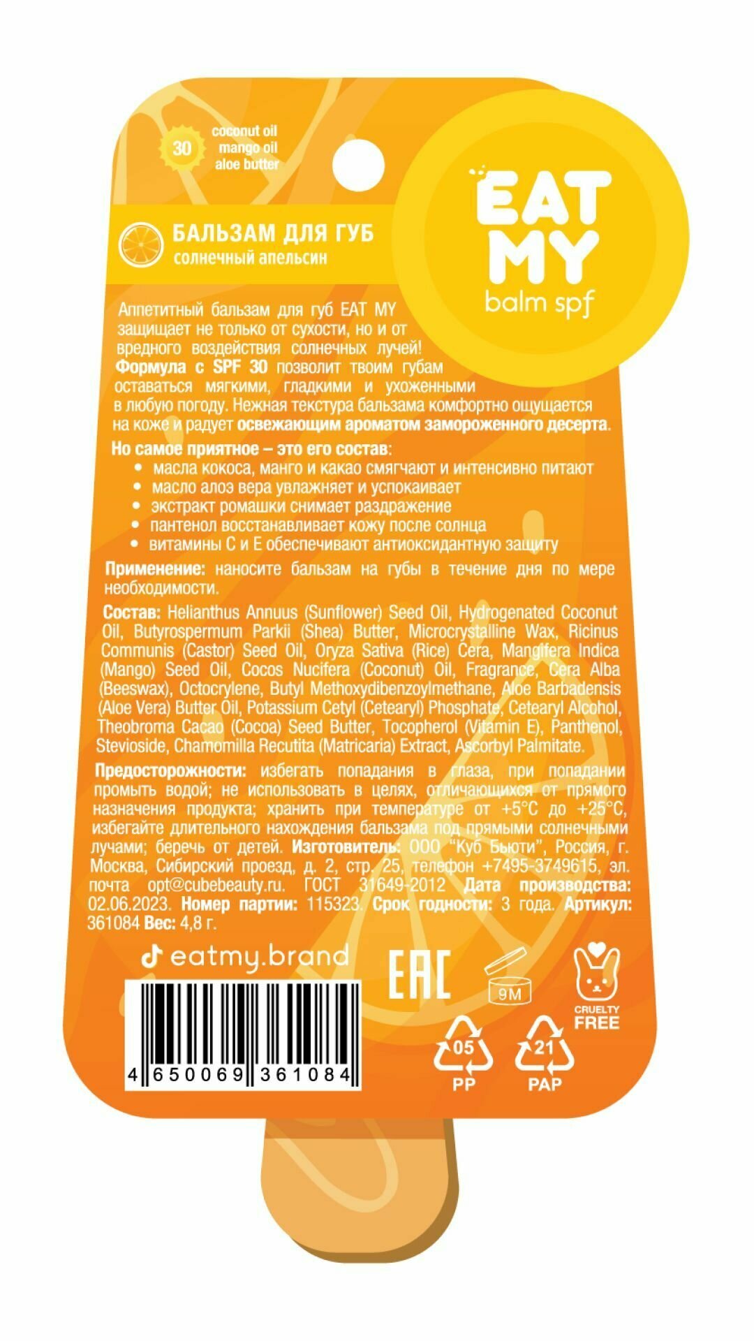 EAT MY Бальзам для губ c SPF 30 "Сочный апельсин" 4,8 г информация: