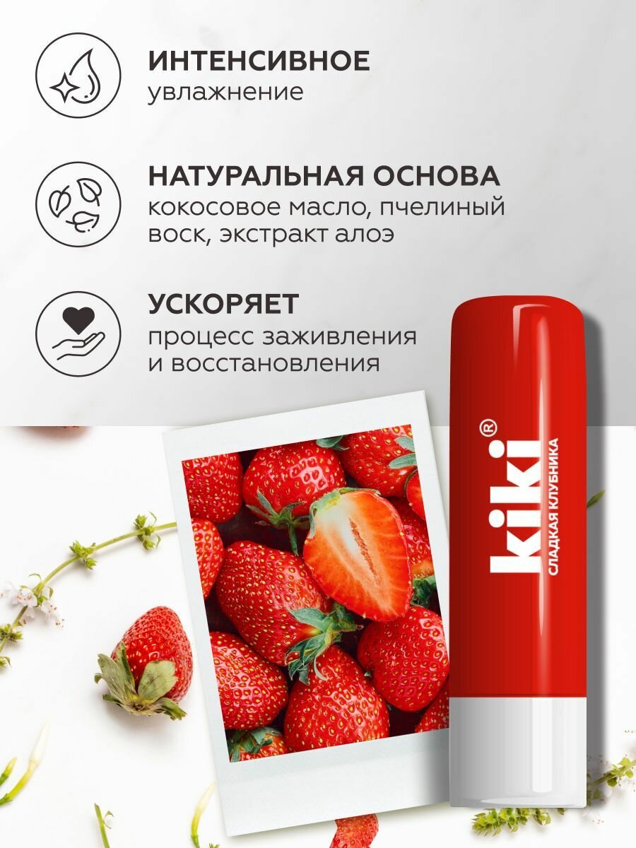 Бальзам для губ kiki Сладкая клубника, увлажнение, питание и восстановление, гигиеническая помада, кики, 3 г информация: