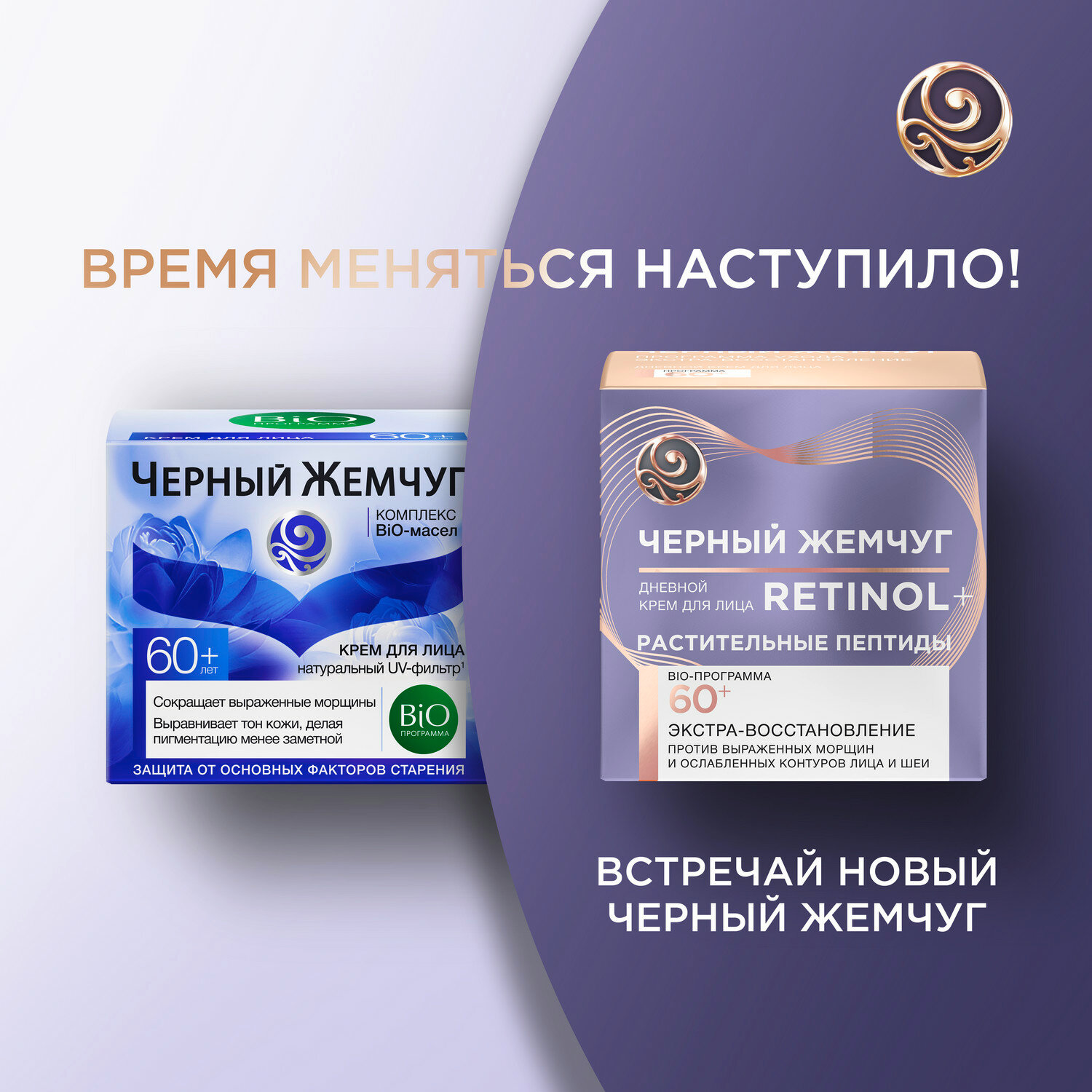 Крем для лица антивозрастной с ретинолом дневной Черный Жемчуг Ретинол+ Экстра-восстановление 60+ лет, подтягивает контуры лица и шеи 50 мл, информация: