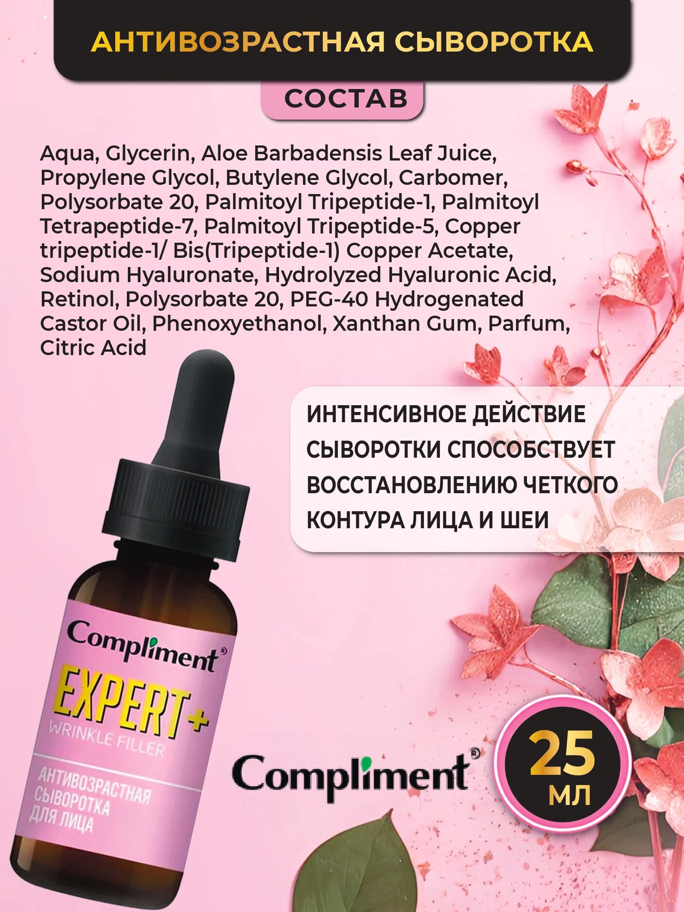 10 цен на Compliment Сыворотка для лица WRINKLE FILLER Антивозрастная EXPERT+, 25мл